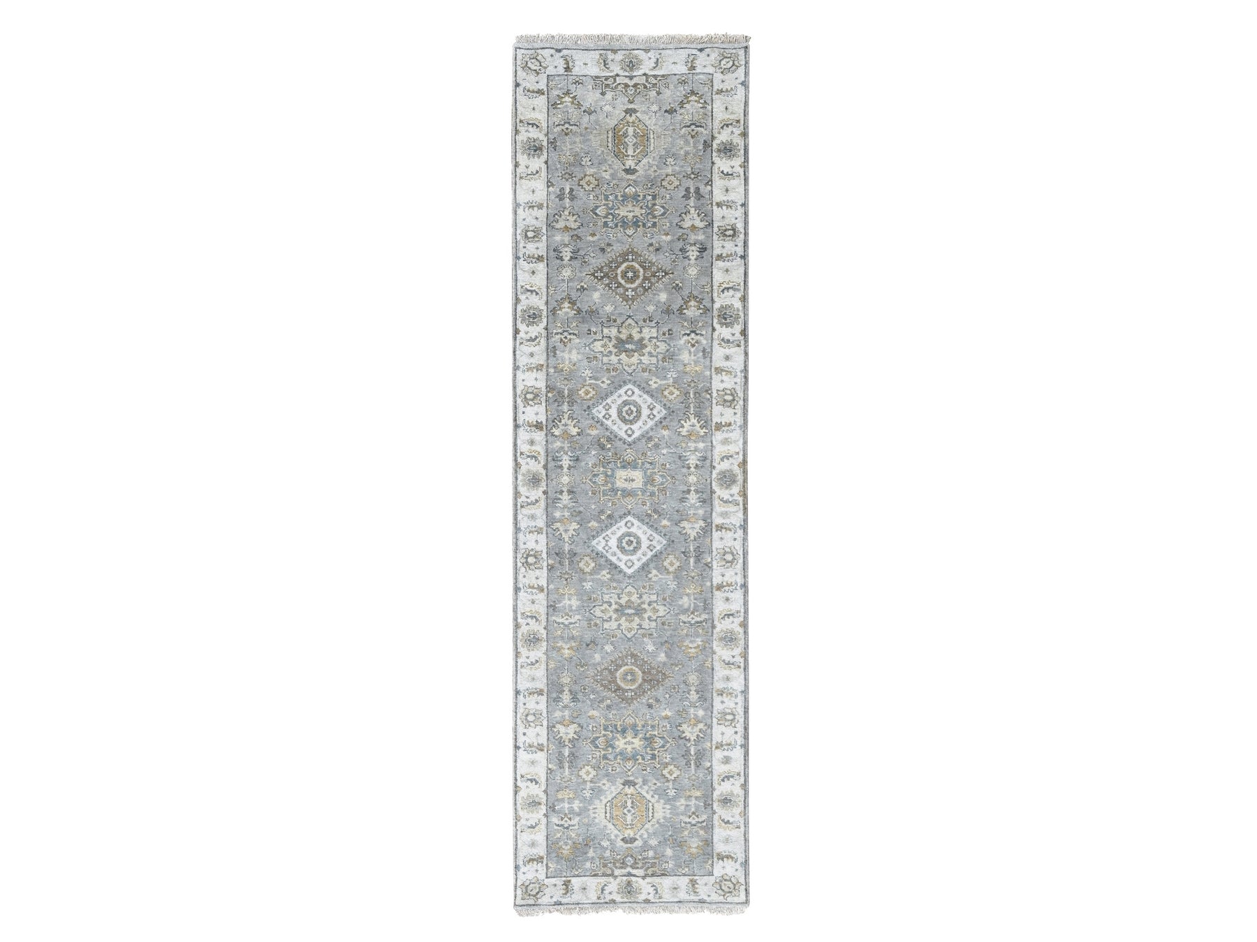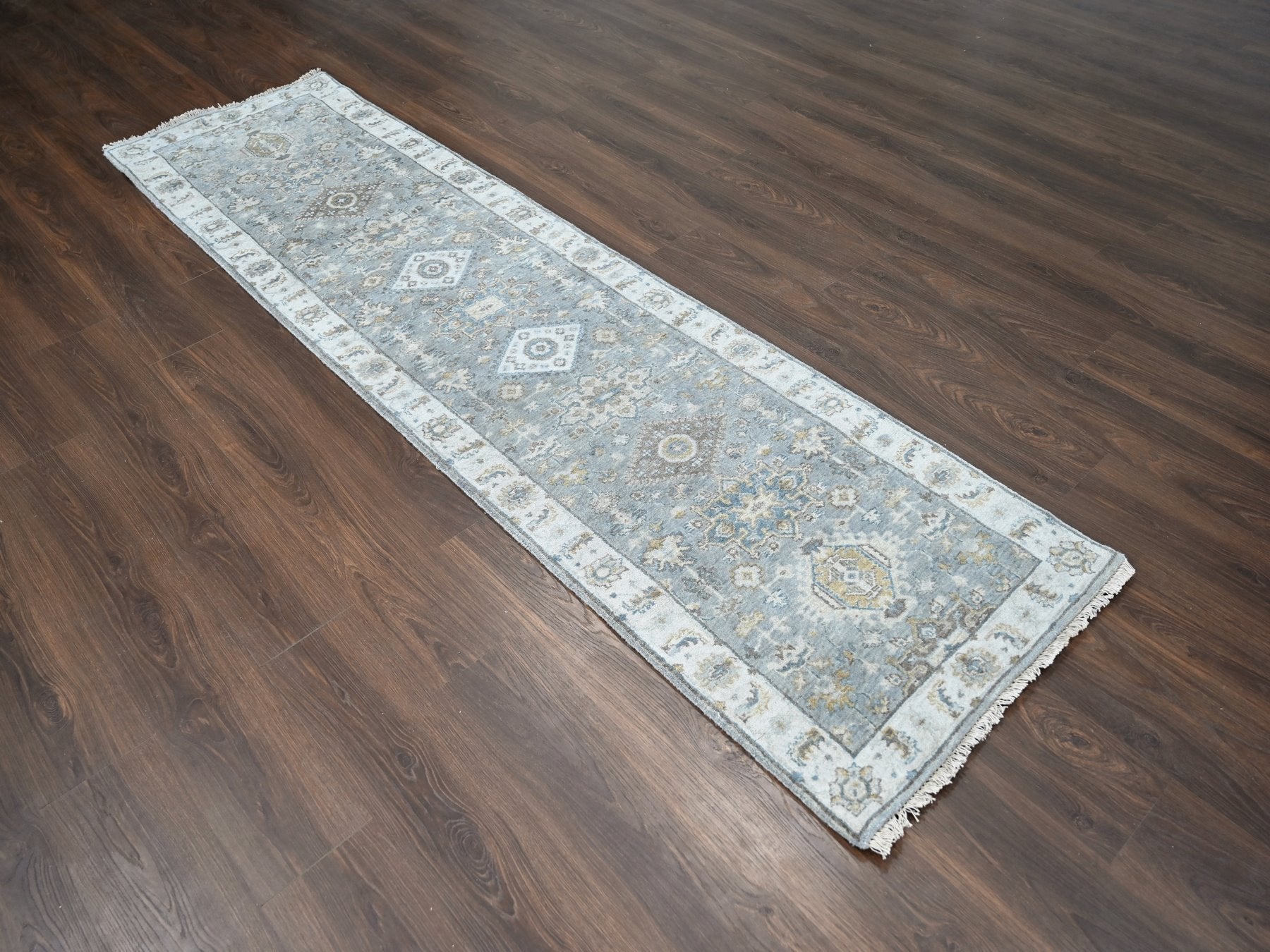 2'7" x 10'0" New Hand Knotted Grey Wool Runner Oriental Rug - MOA10284850
