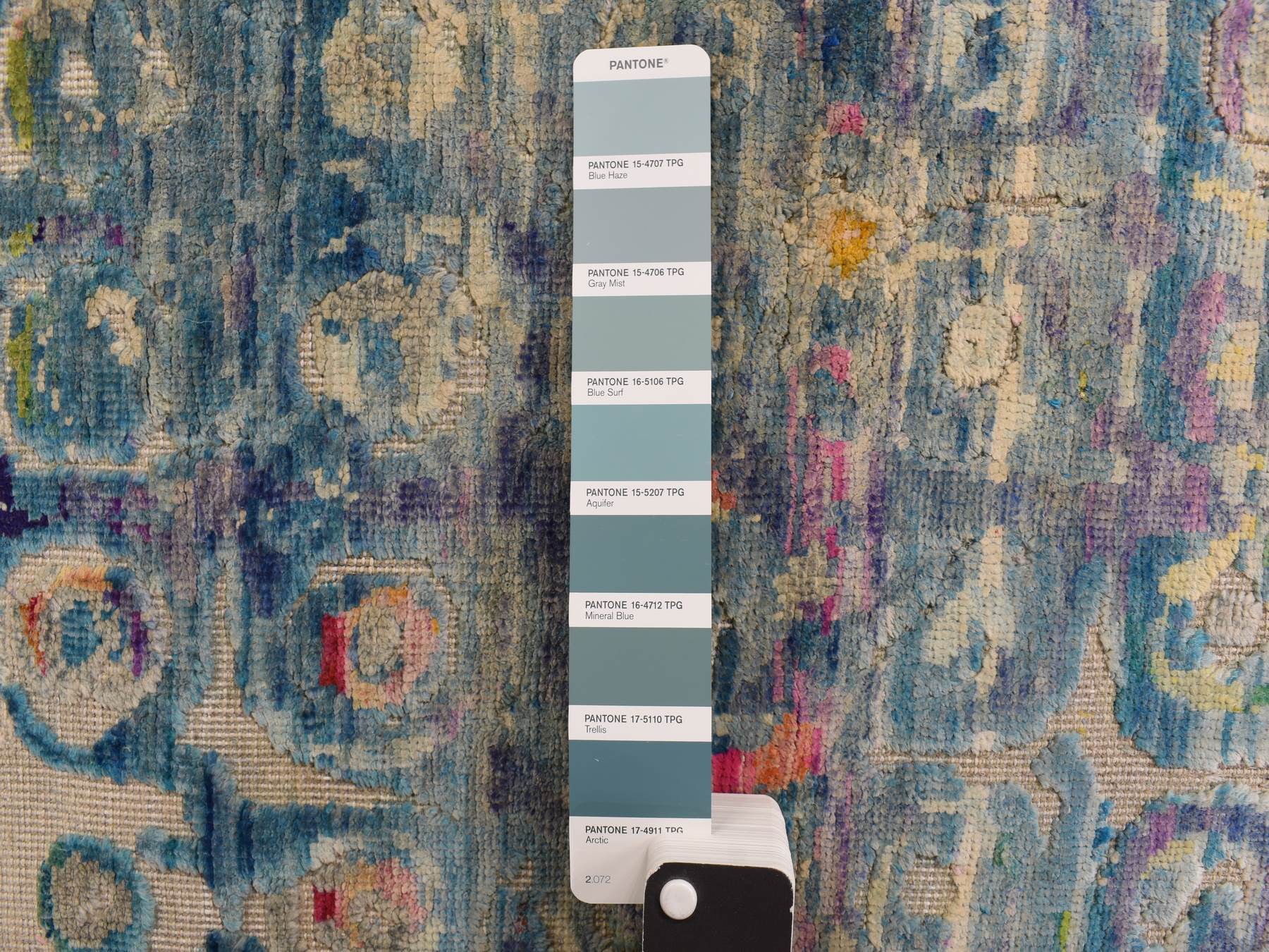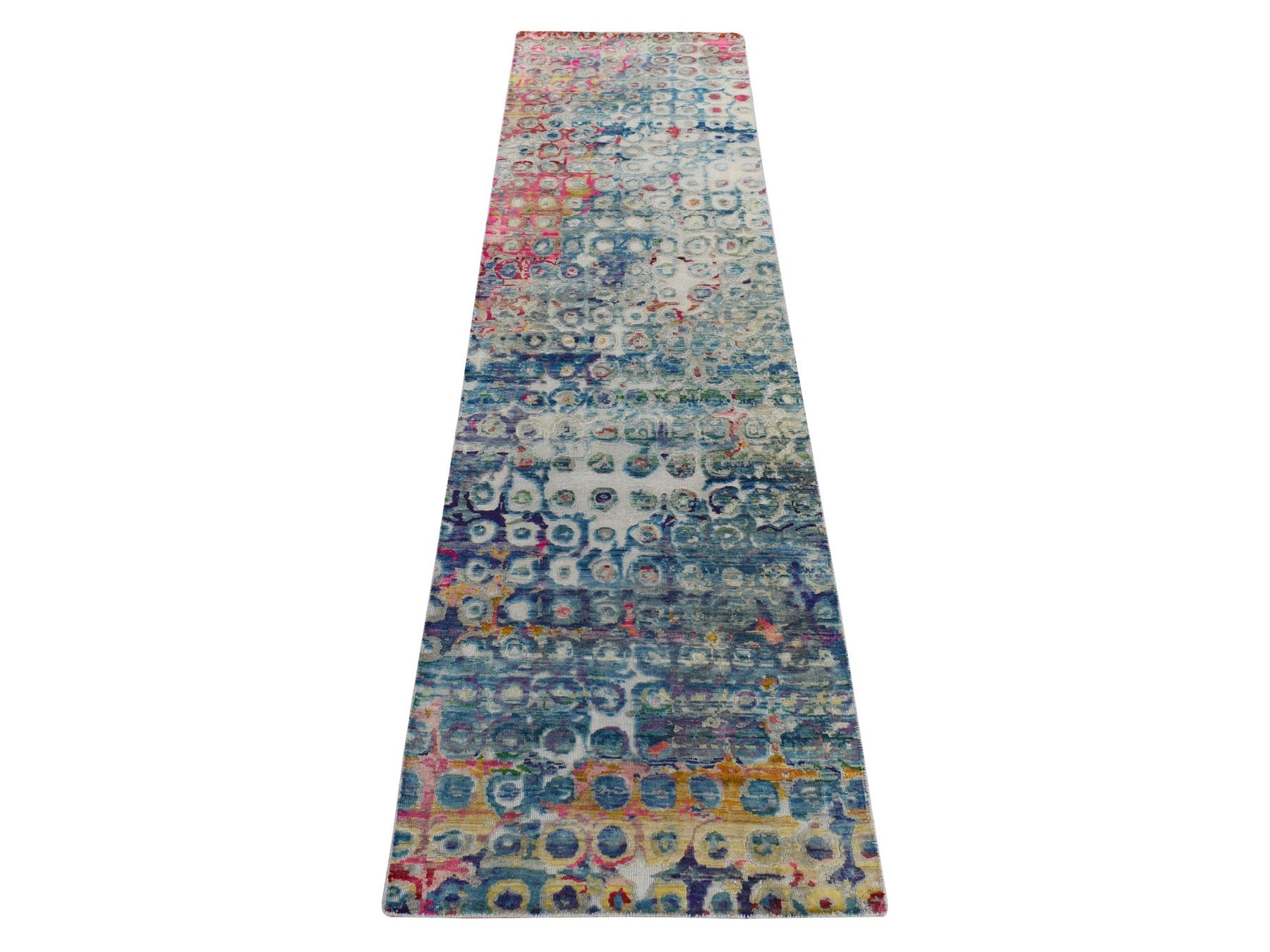 2'7" x 10'2" New Hand Knotted Blue Sari Silk Runner Oriental Rug - MOA10278249