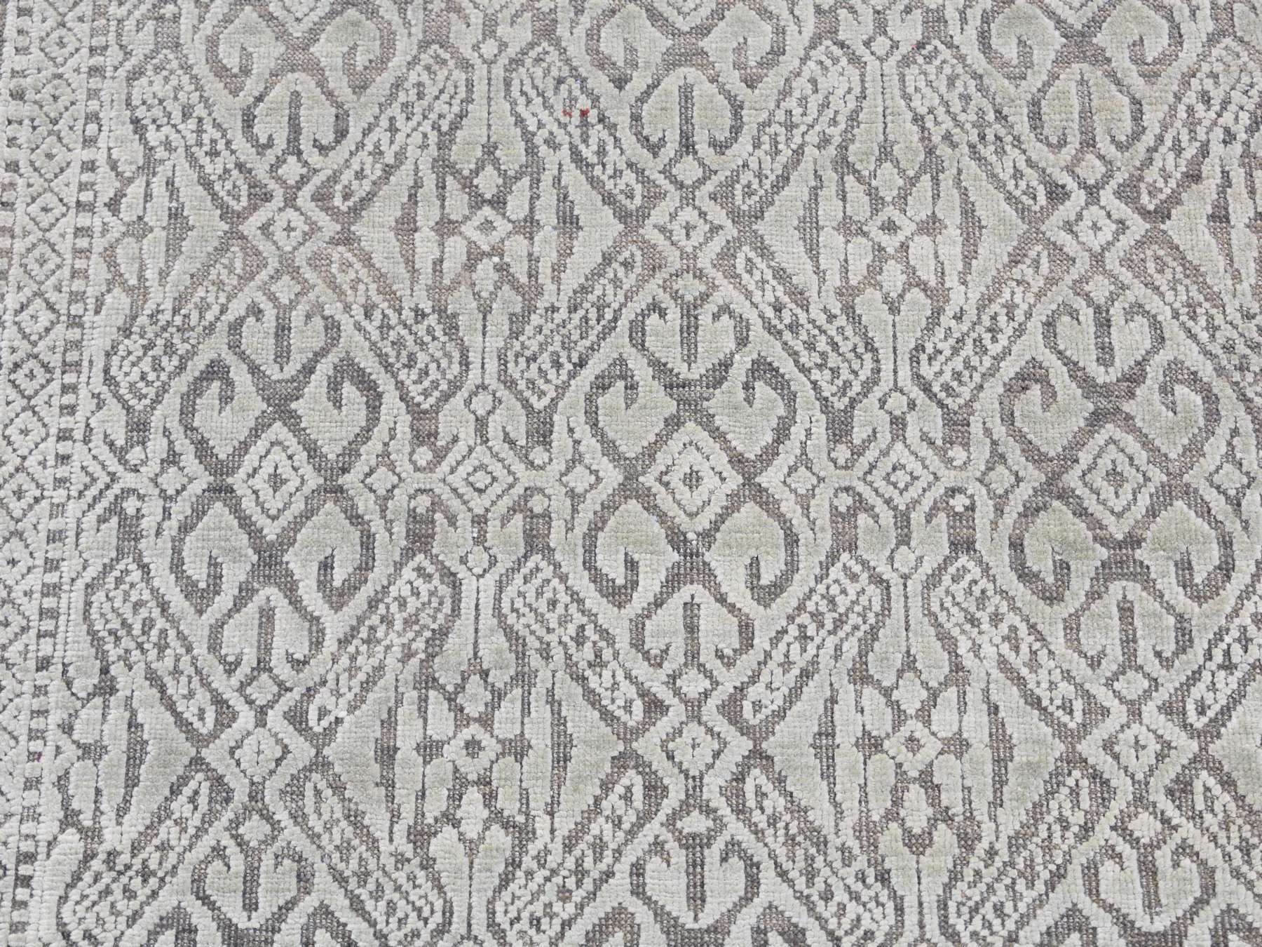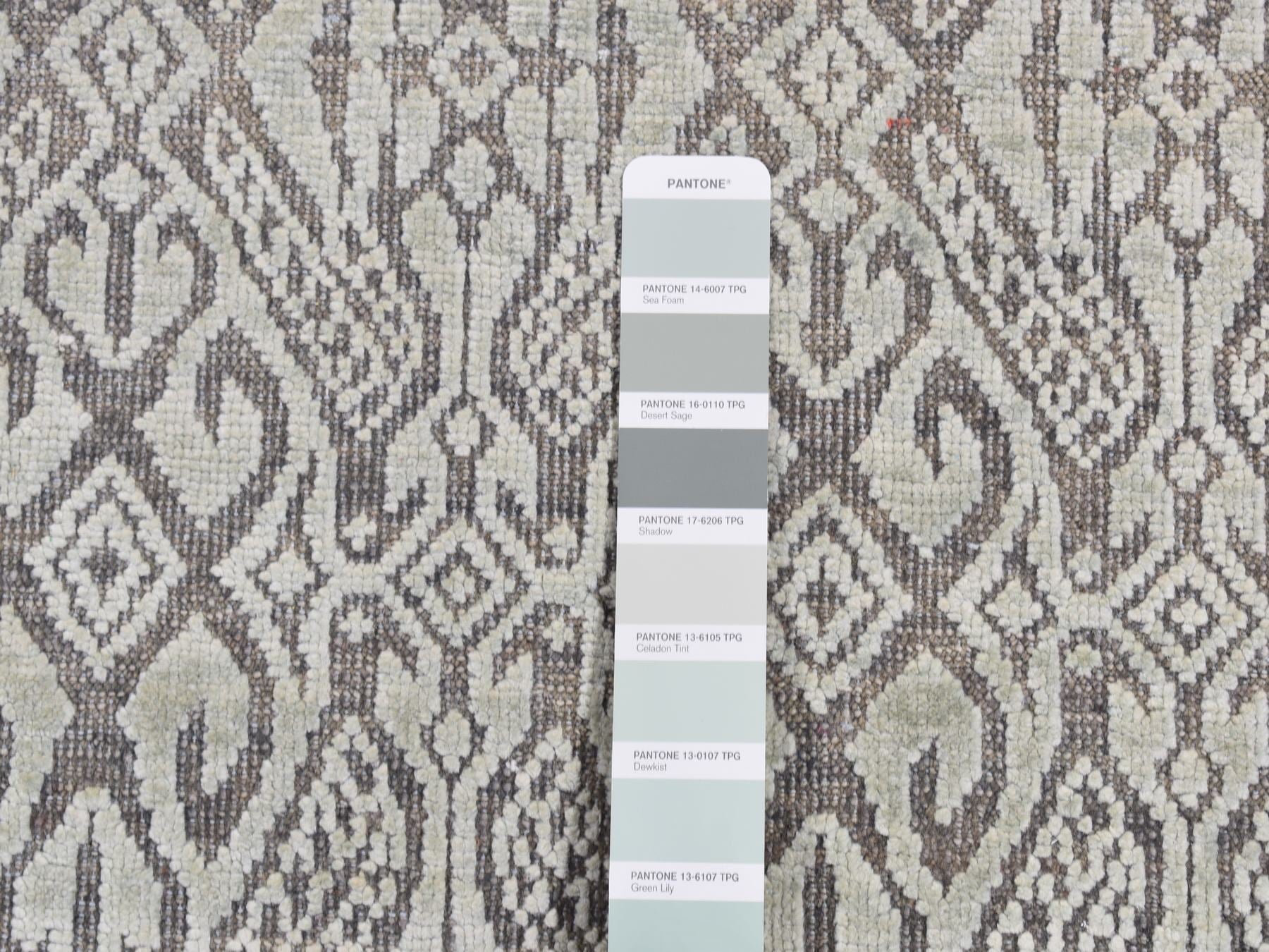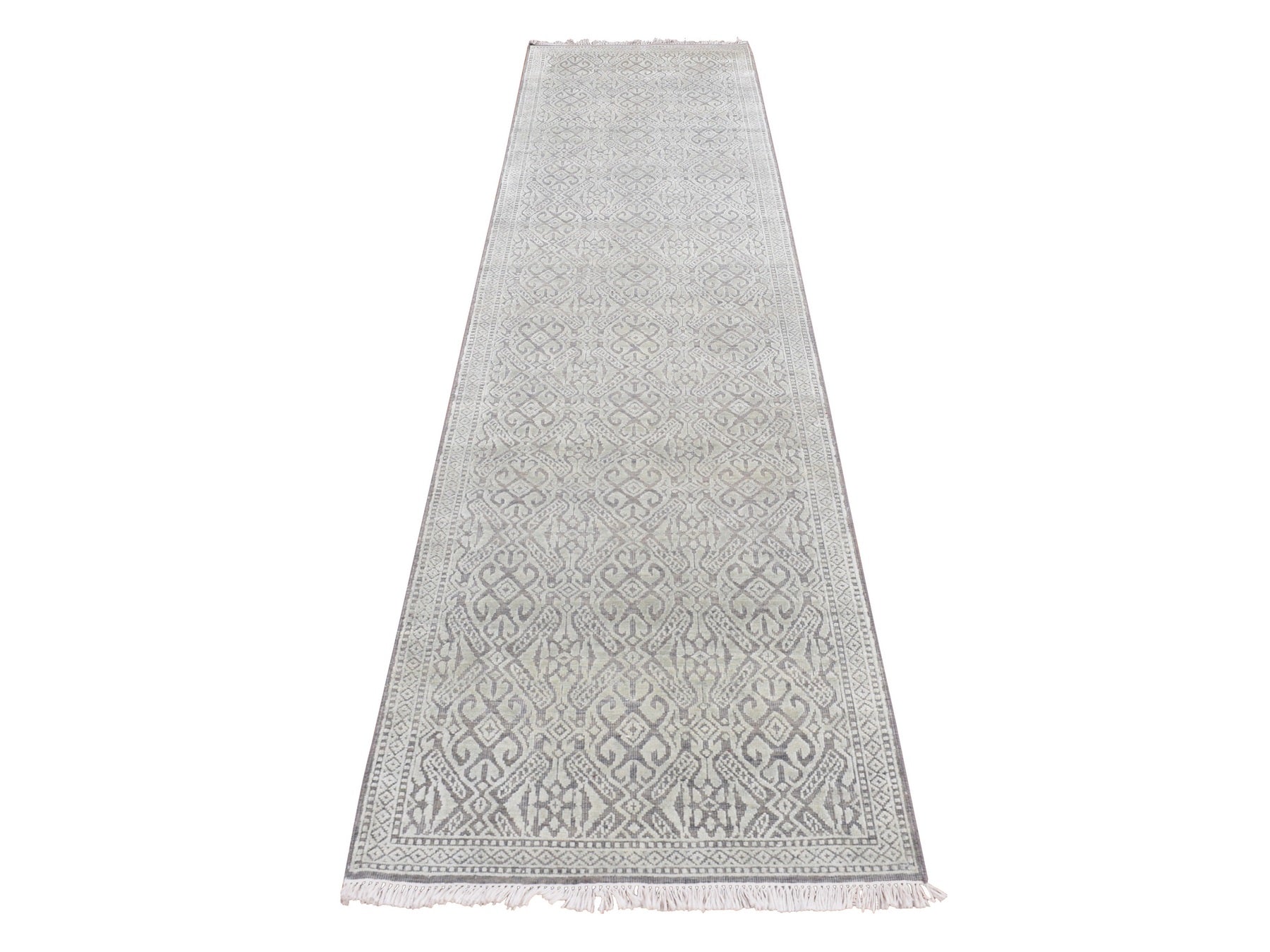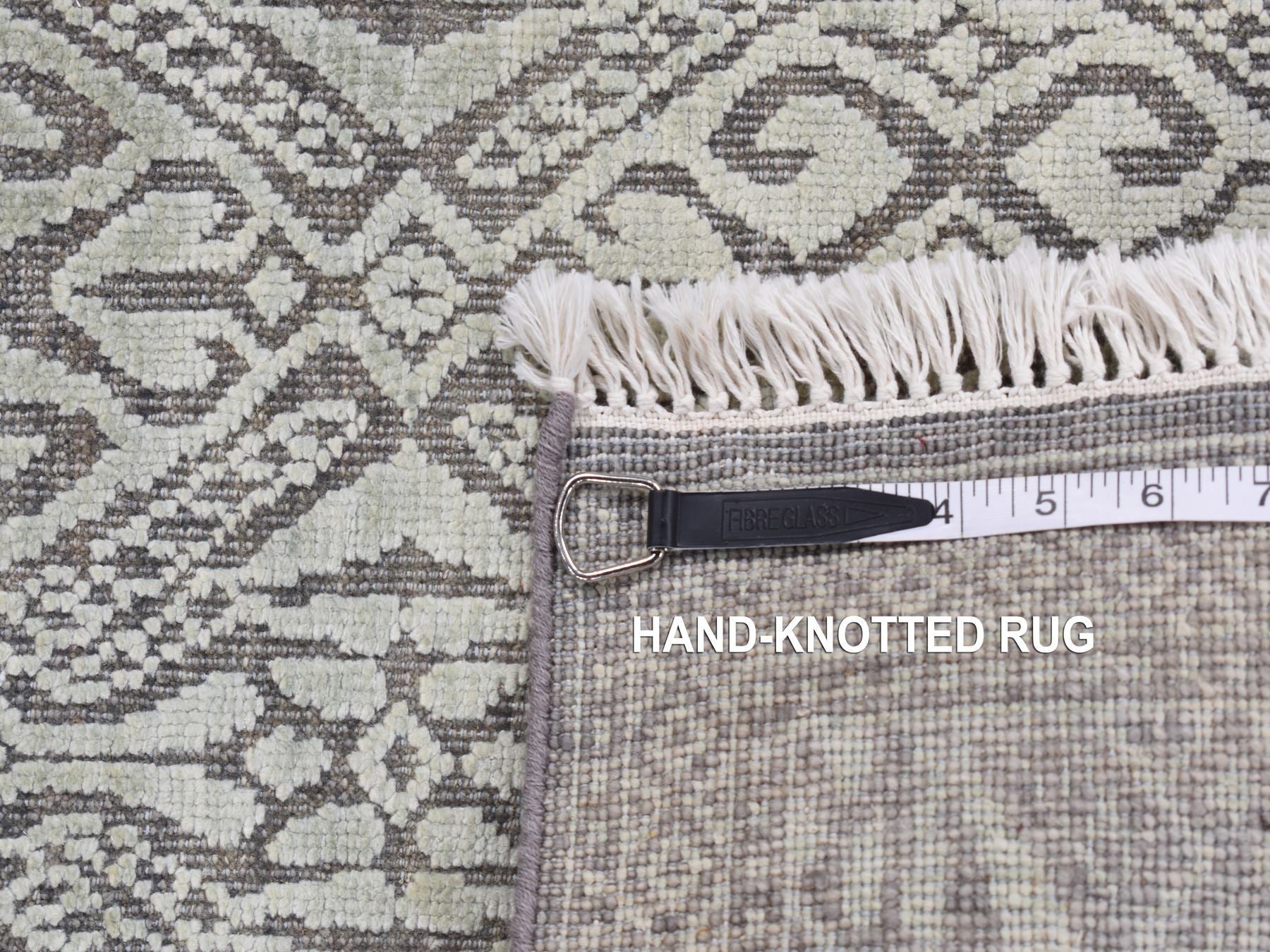 2'7" x 10'4" New Hand Knotted Green Wool & Silk Runner Oriental Rug - MOA10287250