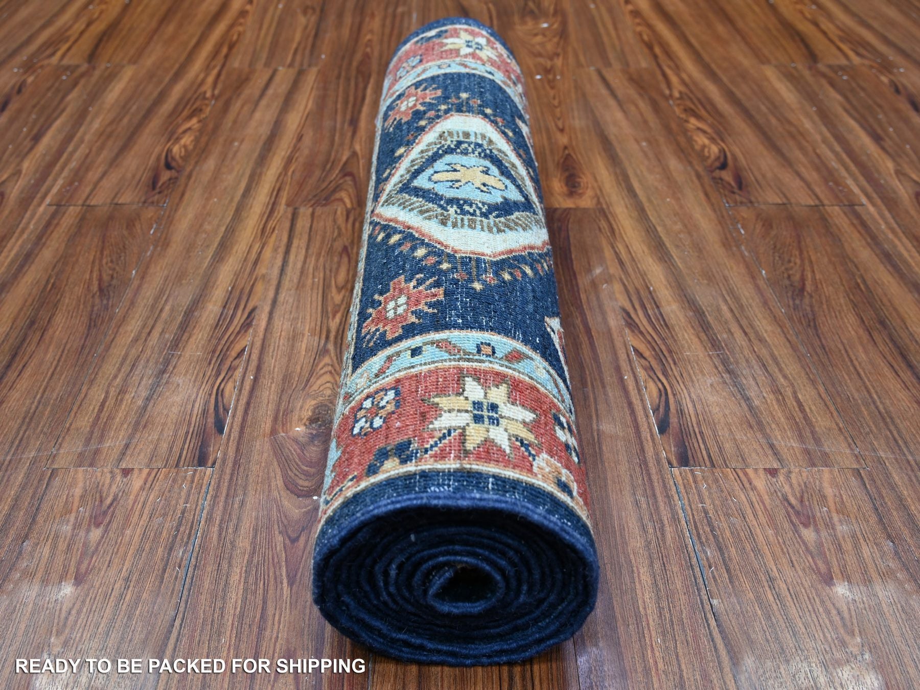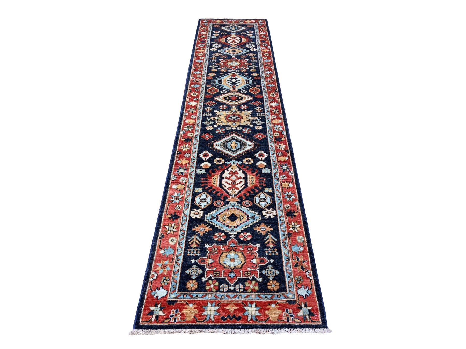 2'7" x 11'8" New Hand Knotted Blue Wool Runner Oriental Rug - MOA10288403