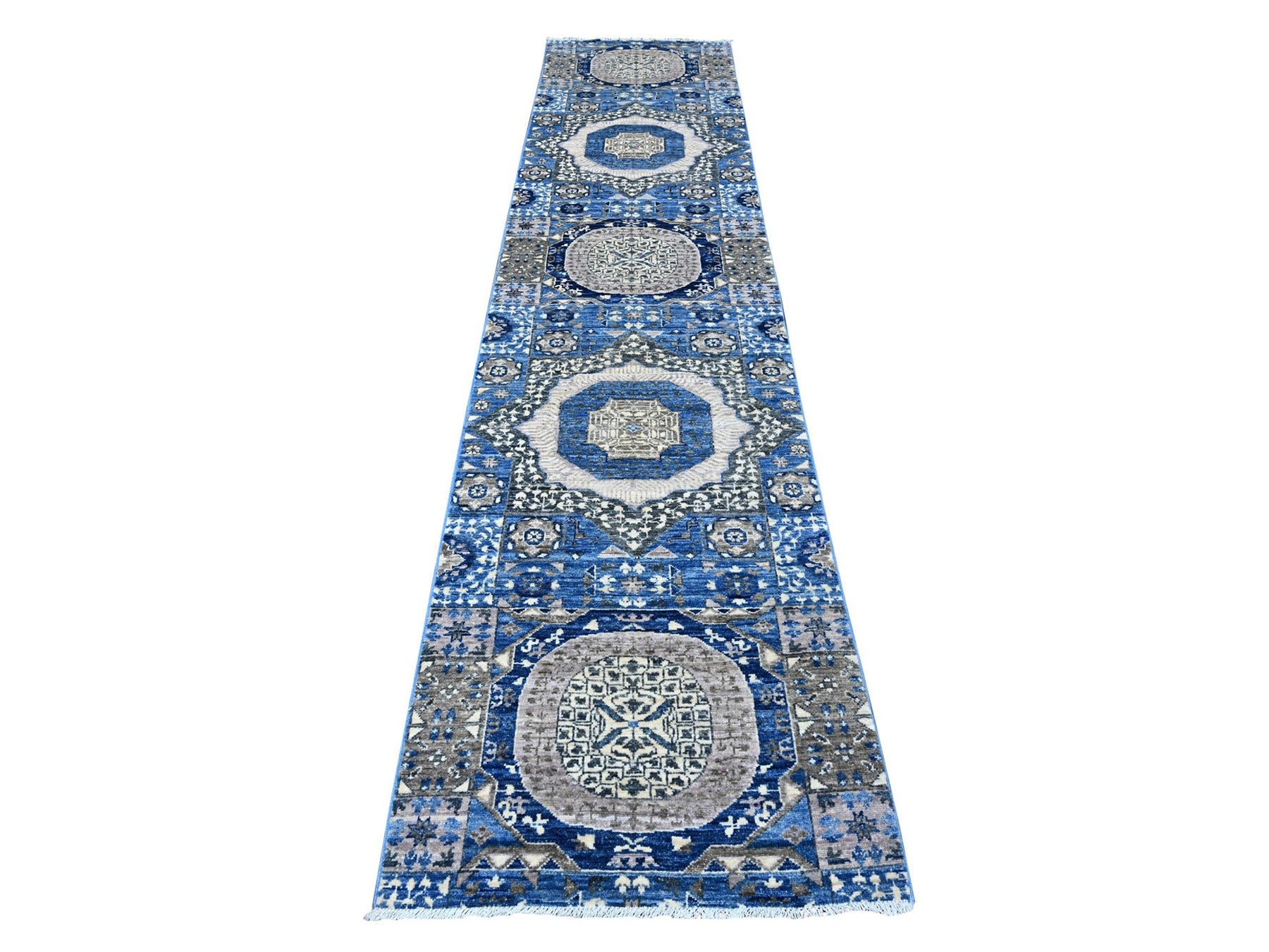 2'7" x 11'9" New Hand Knotted Blue Wool Runner Oriental Rug - MOA10288892