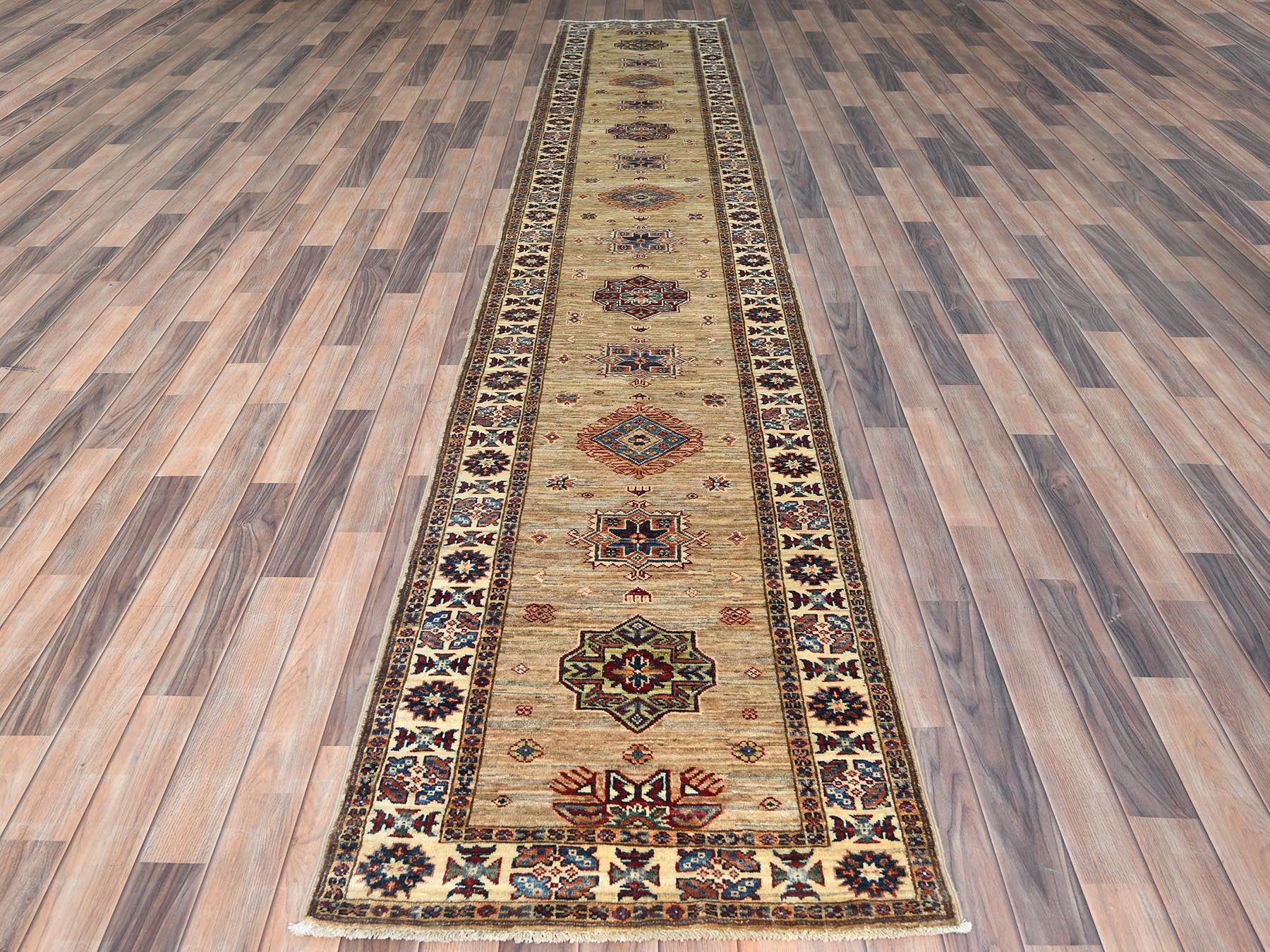 2'7" x 13'6" New Hand Knotted Brown Wool Runner Oriental Rug - MOA10282721