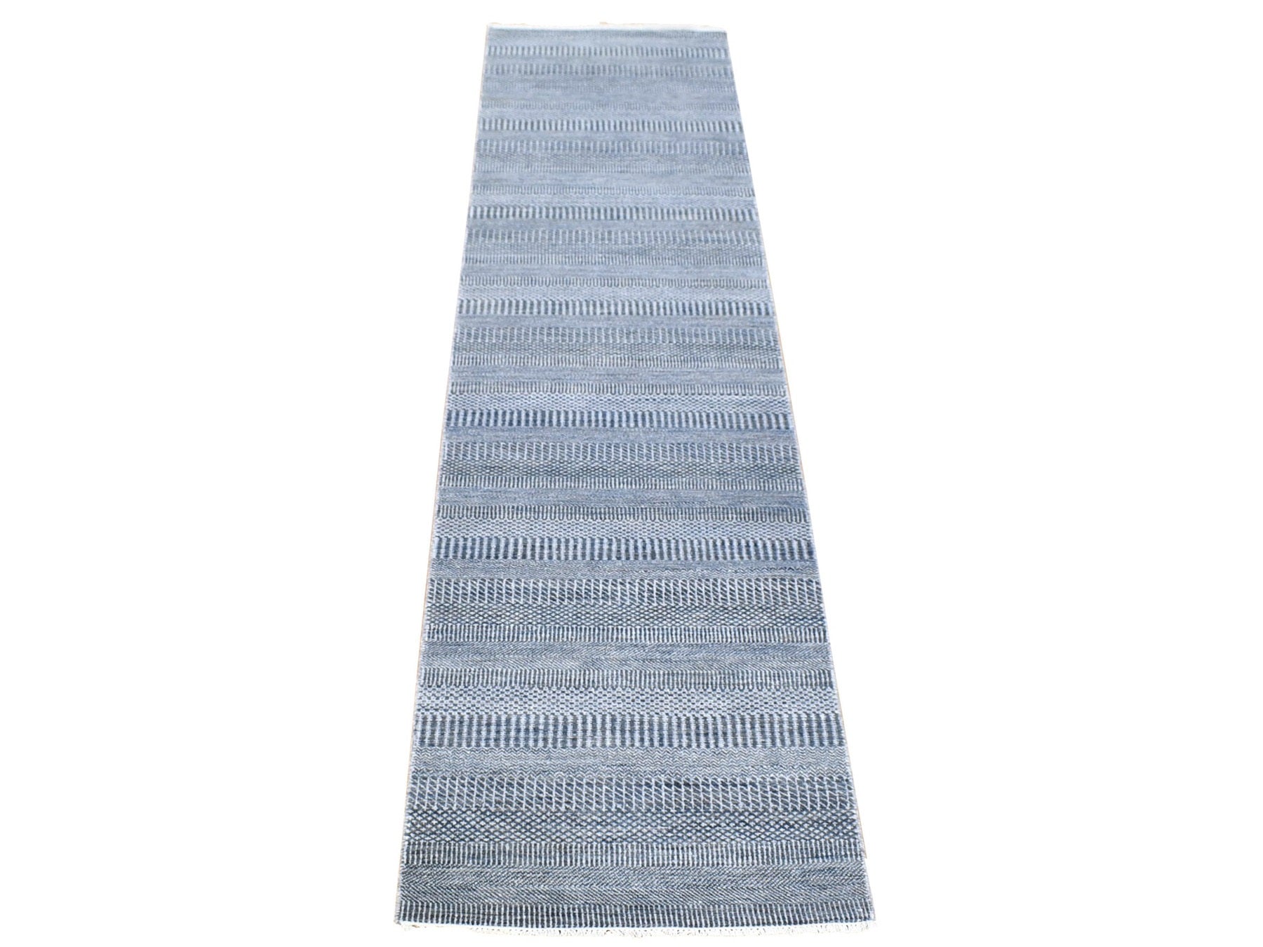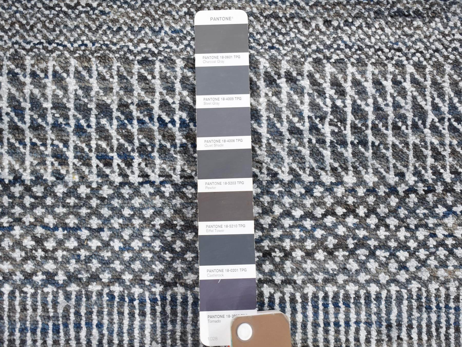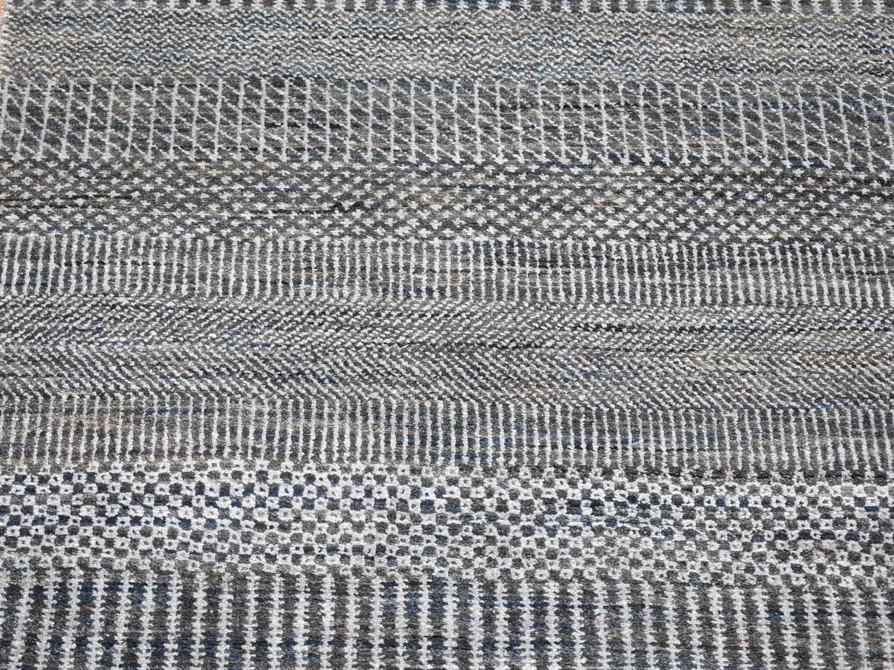 2'7" x 14'1" New Hand Knotted Black Wool & Silk Runner Oriental Rug - MOA10280164