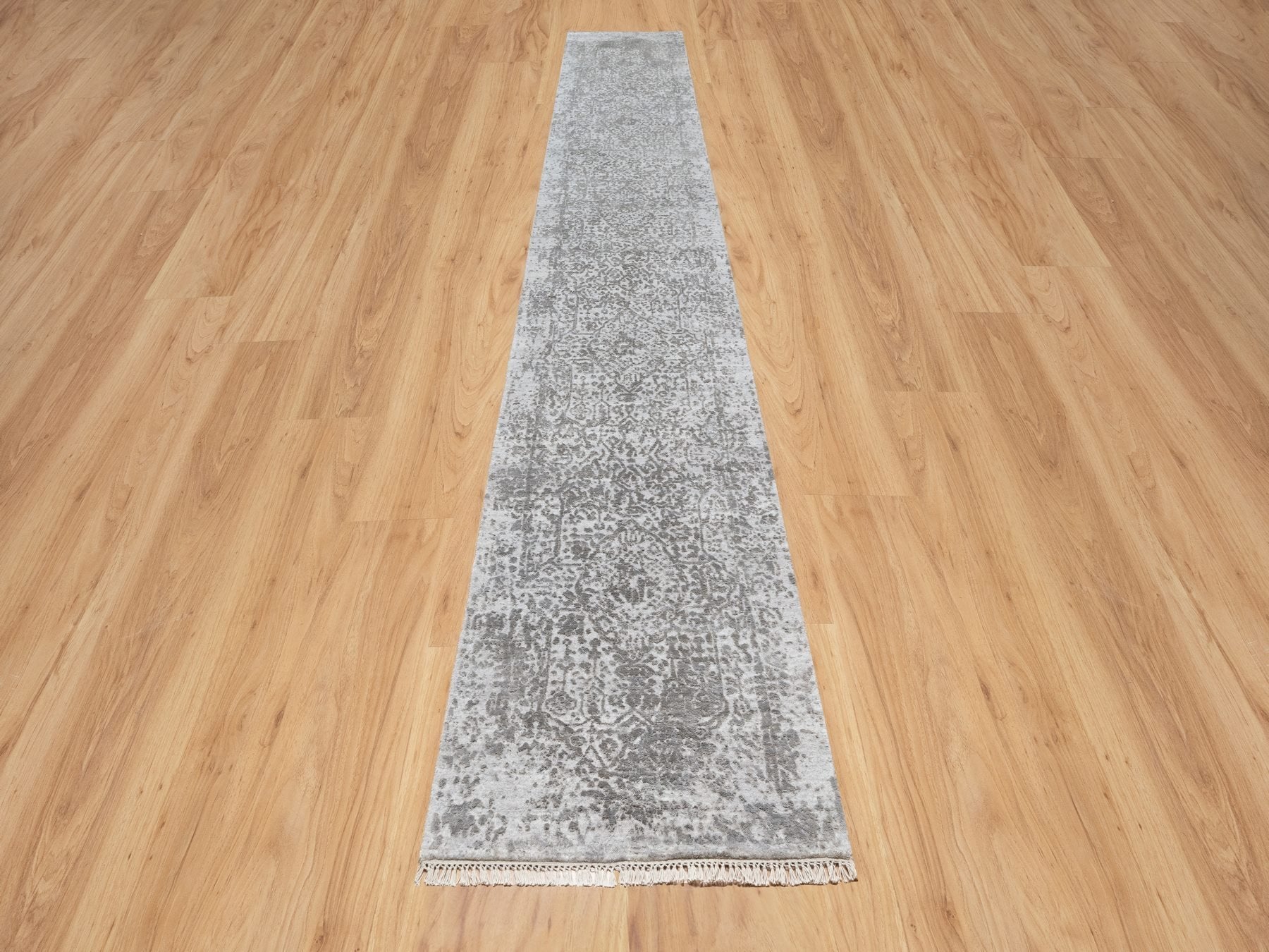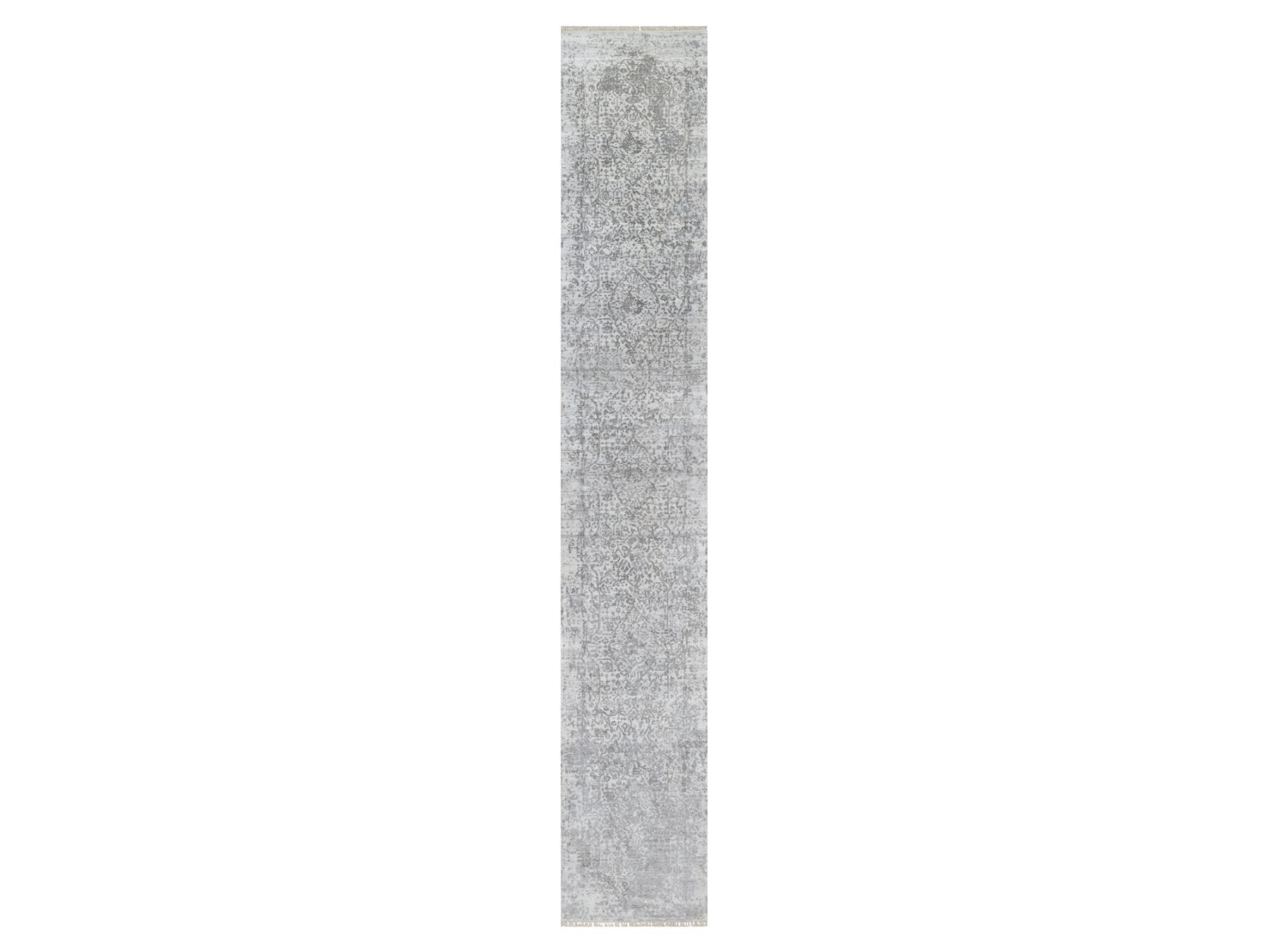 2'7" x 16'0" New Hand Knotted Grey Wool & Silk Runner Oriental Rug - MOA10290817