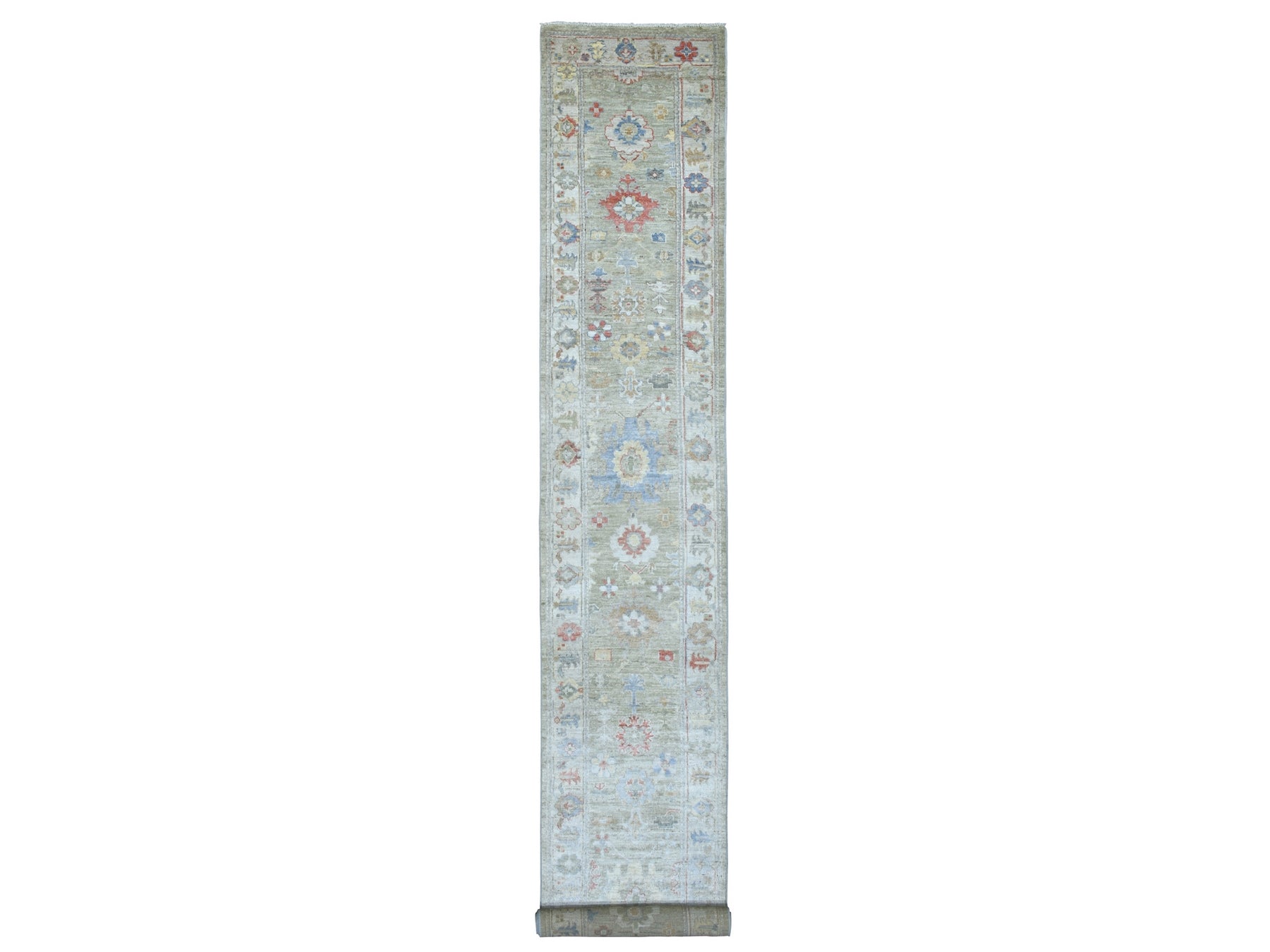 2'7" x 17'5" New Hand Knotted Grey Wool Runner Oriental Rug - MOA10268405
