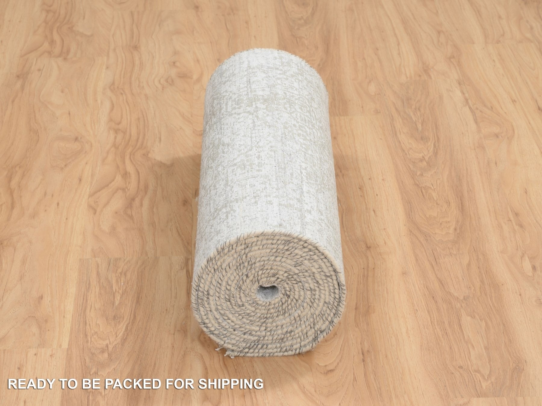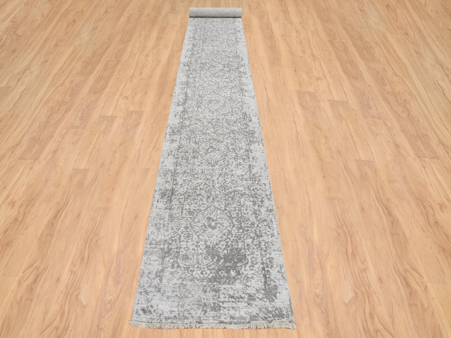 2'7" x 17'7" New Hand Knotted Grey Wool & Silk Runner Oriental Rug - MOA10265022