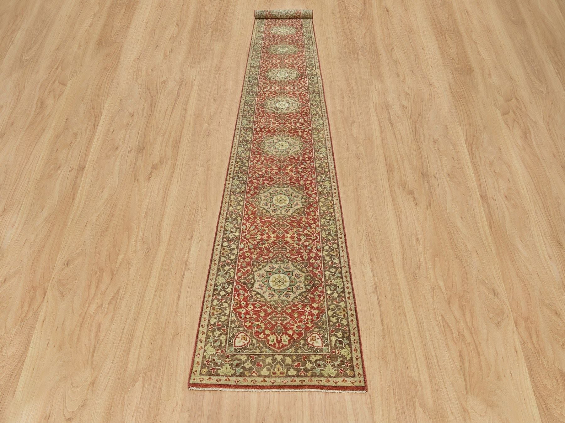 2'7" x 18'0" New Hand Knotted Red Wool Runner Oriental Rug - MOA10290107