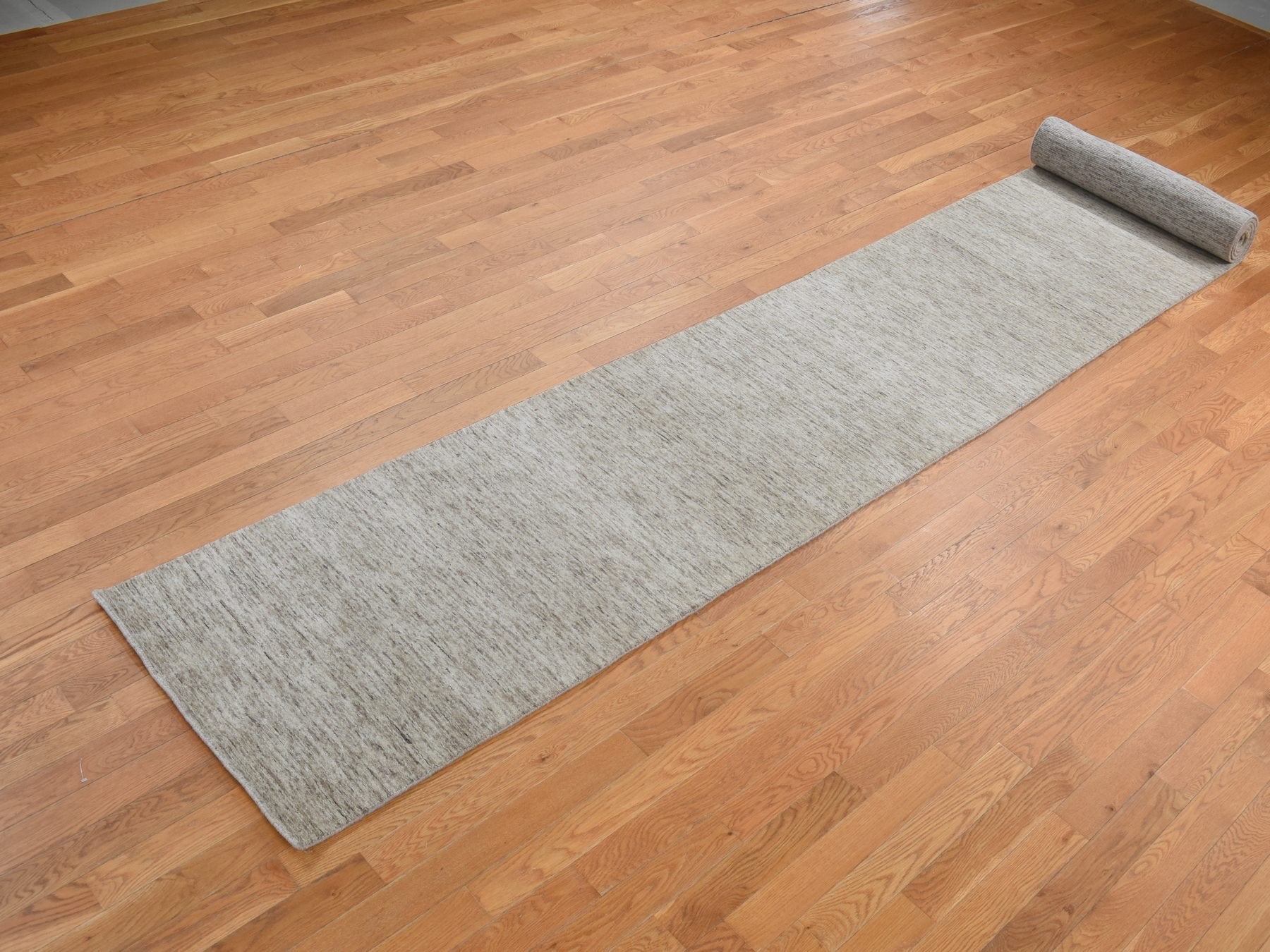 2'7" x 18'2" New Hand Loomed Grey Wool Runner Oriental Rug - MOA10287632