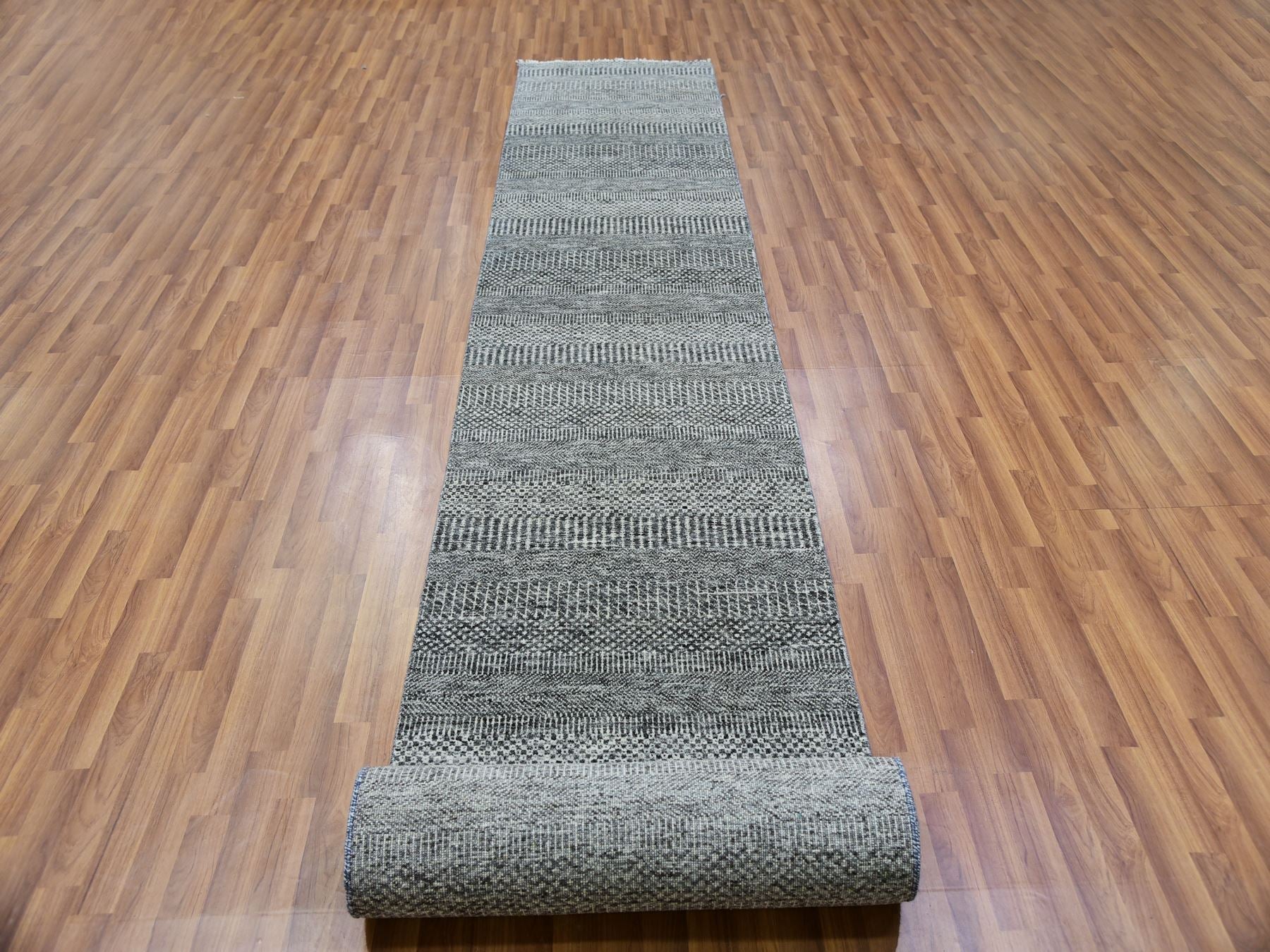 2'7" x 18'5" New Hand Knotted Grey Wool Runner Oriental Rug - MOA10279879