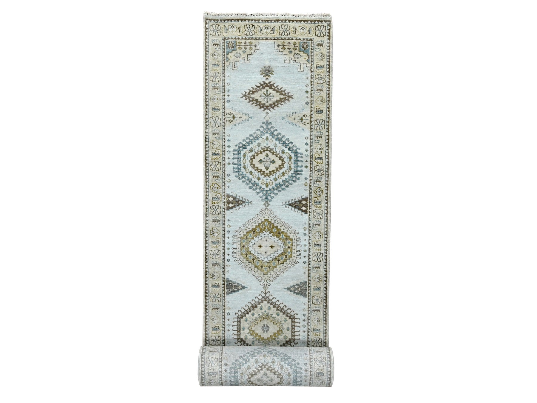 2'7" x 19'9" New Hand Knotted Grey Wool Runner Oriental Rug - MOA10284923
