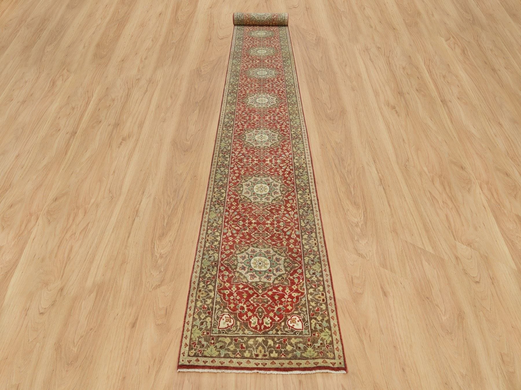2'7" x 22'0" New Hand Knotted Red Wool Runner Oriental Rug - MOA10290116