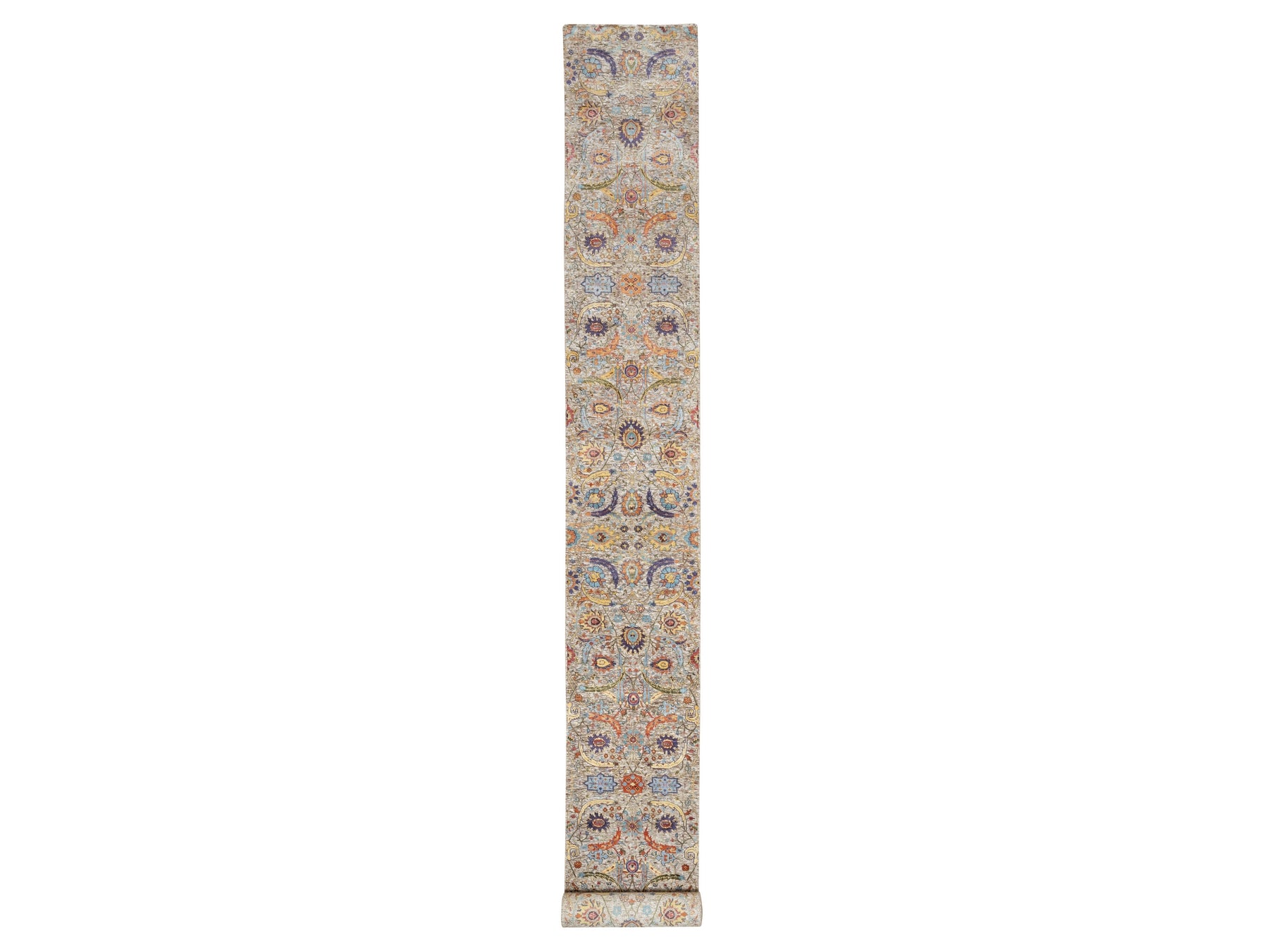 2'7" x 23'10" New Hand Knotted Beige Wool & Silk Runner Oriental Rug - MOA10290943