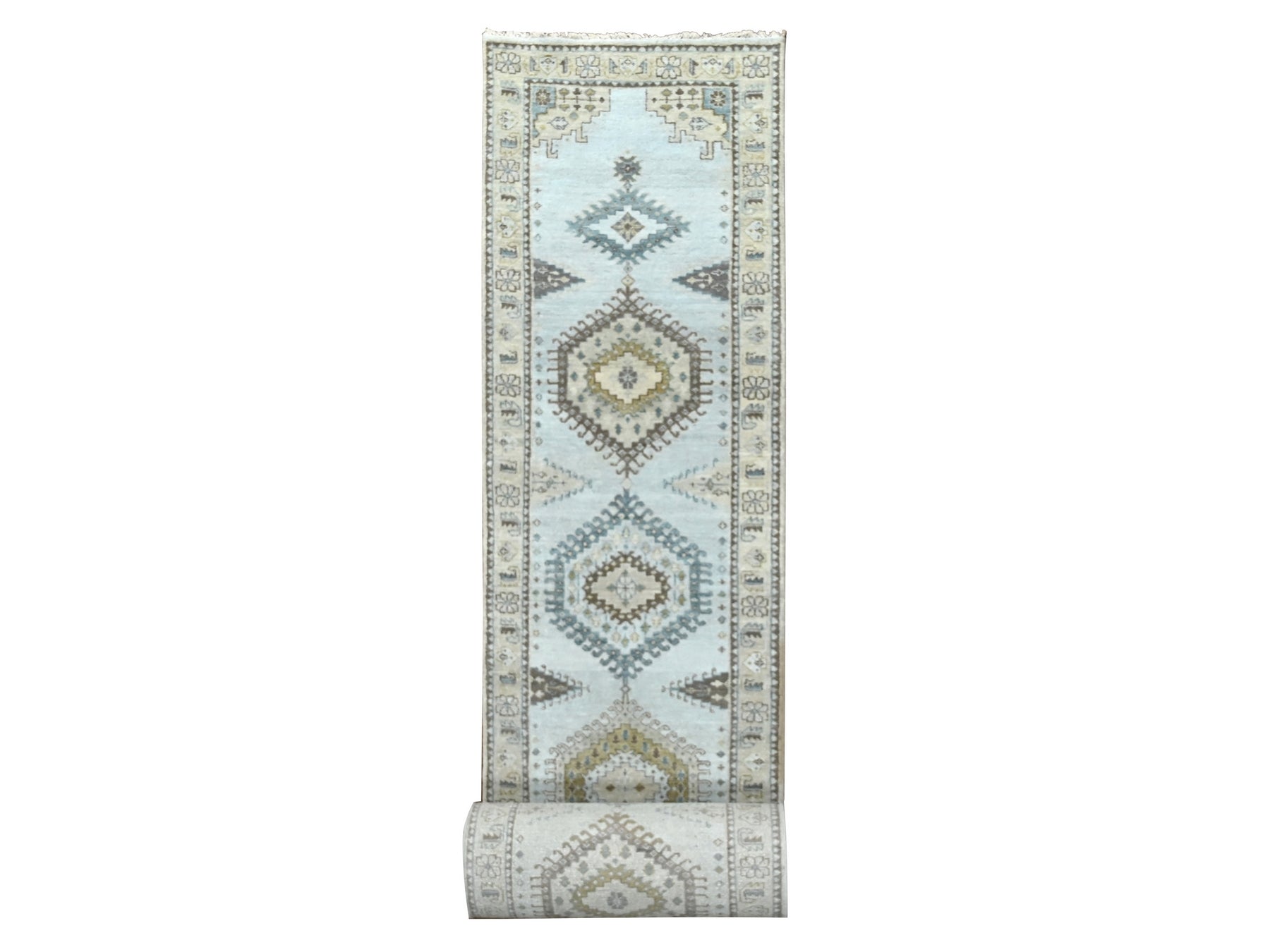 2'7" x 23'9" New Hand Knotted Grey Wool Runner Oriental Rug - MOA10284928