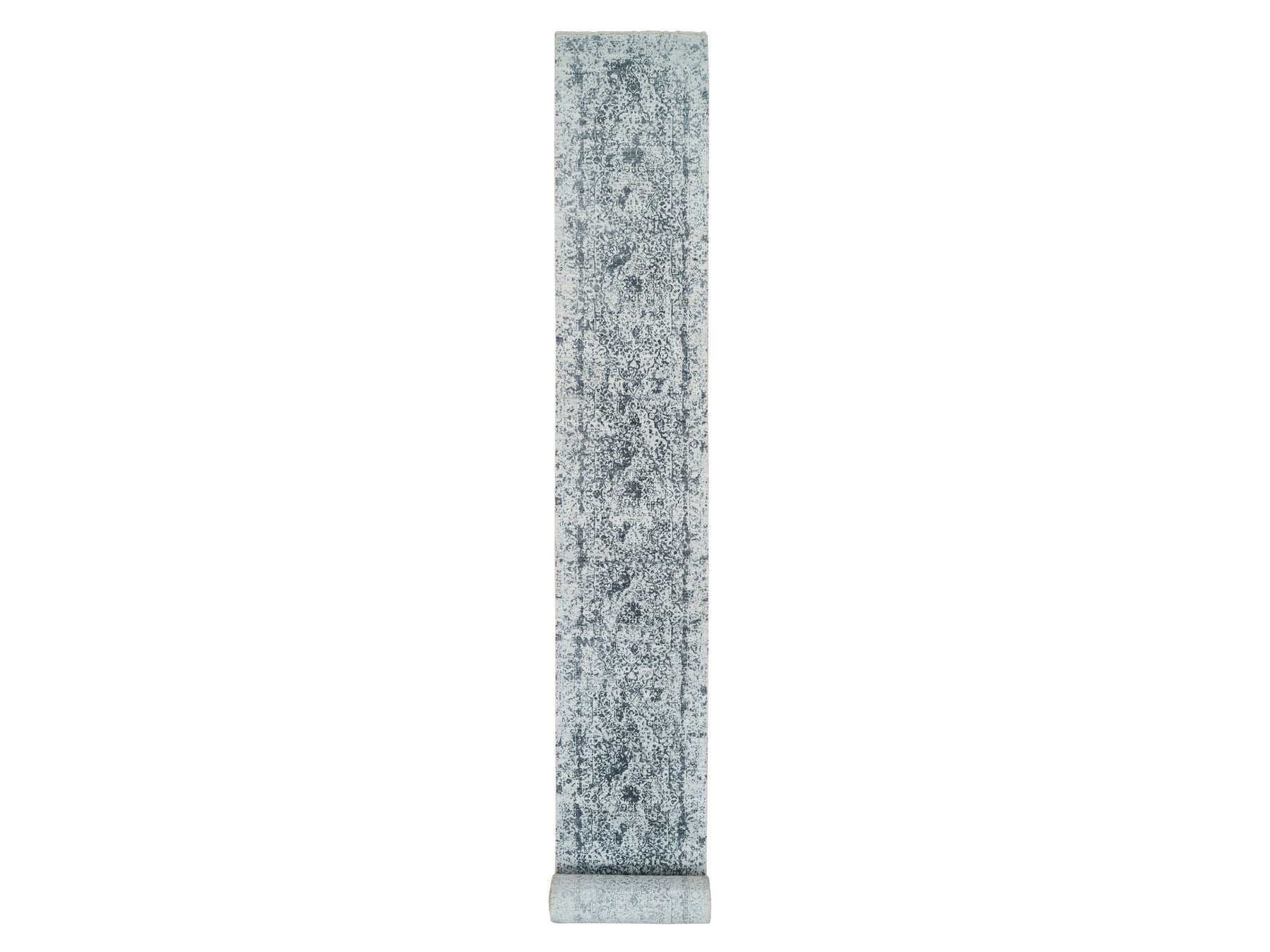 2'7" x 25'8" New Hand Knotted Grey Wool & Silk Runner Oriental Rug - MOA10265215