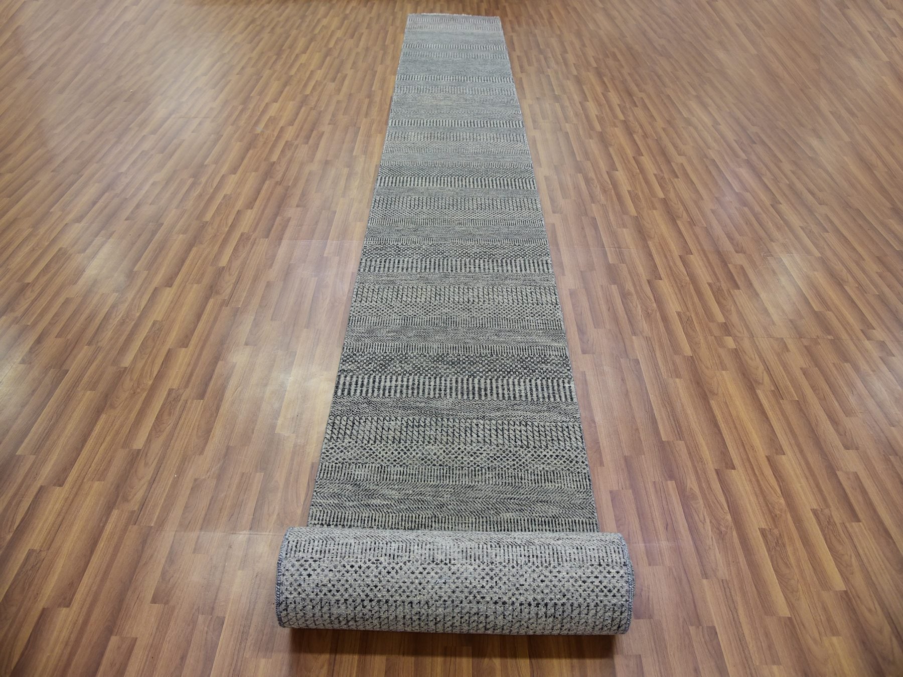 2'7" x 26'3" New Hand Knotted Grey Wool Runner Oriental Rug - MOA10279701