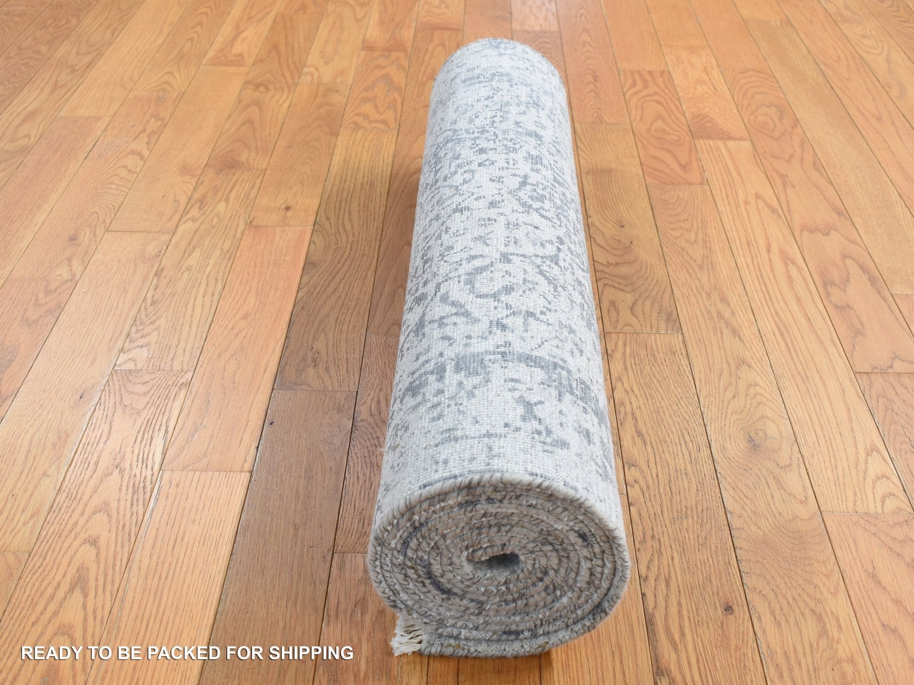 2'7" x 7'10" New Hand Knotted Grey Wool & Silk Runner Oriental Rug - MOA10287291
