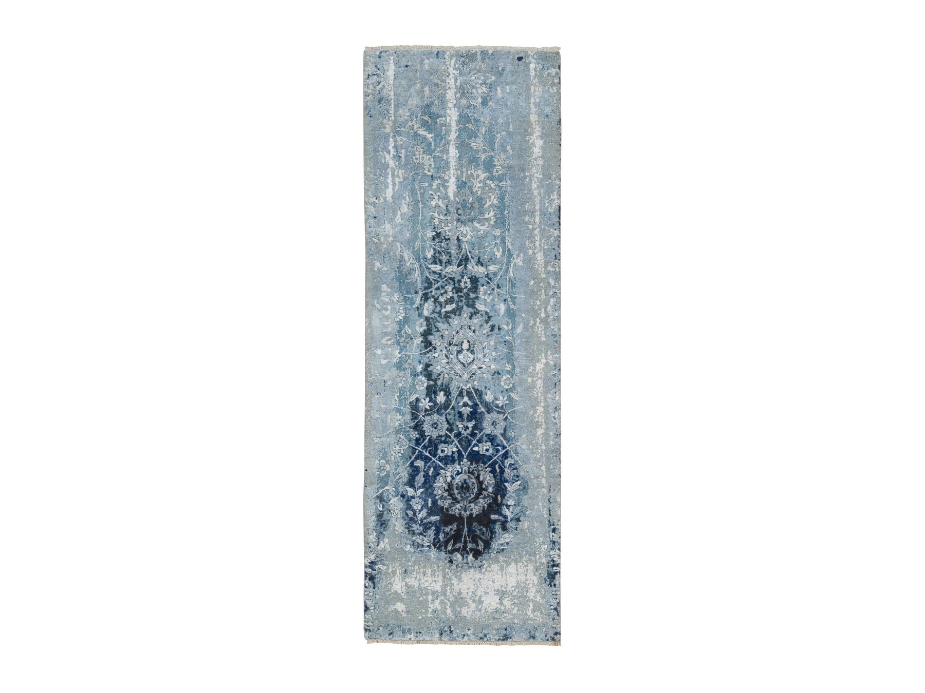 2'7" x 8'0" New Hand Knotted Blue Wool & Silk Runner Oriental Rug - MOA10263191