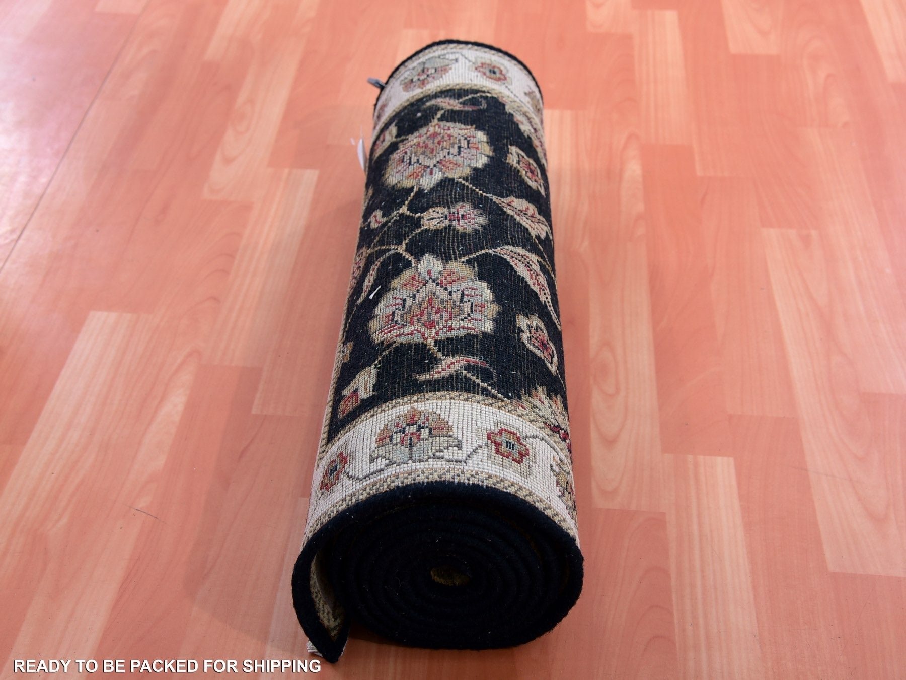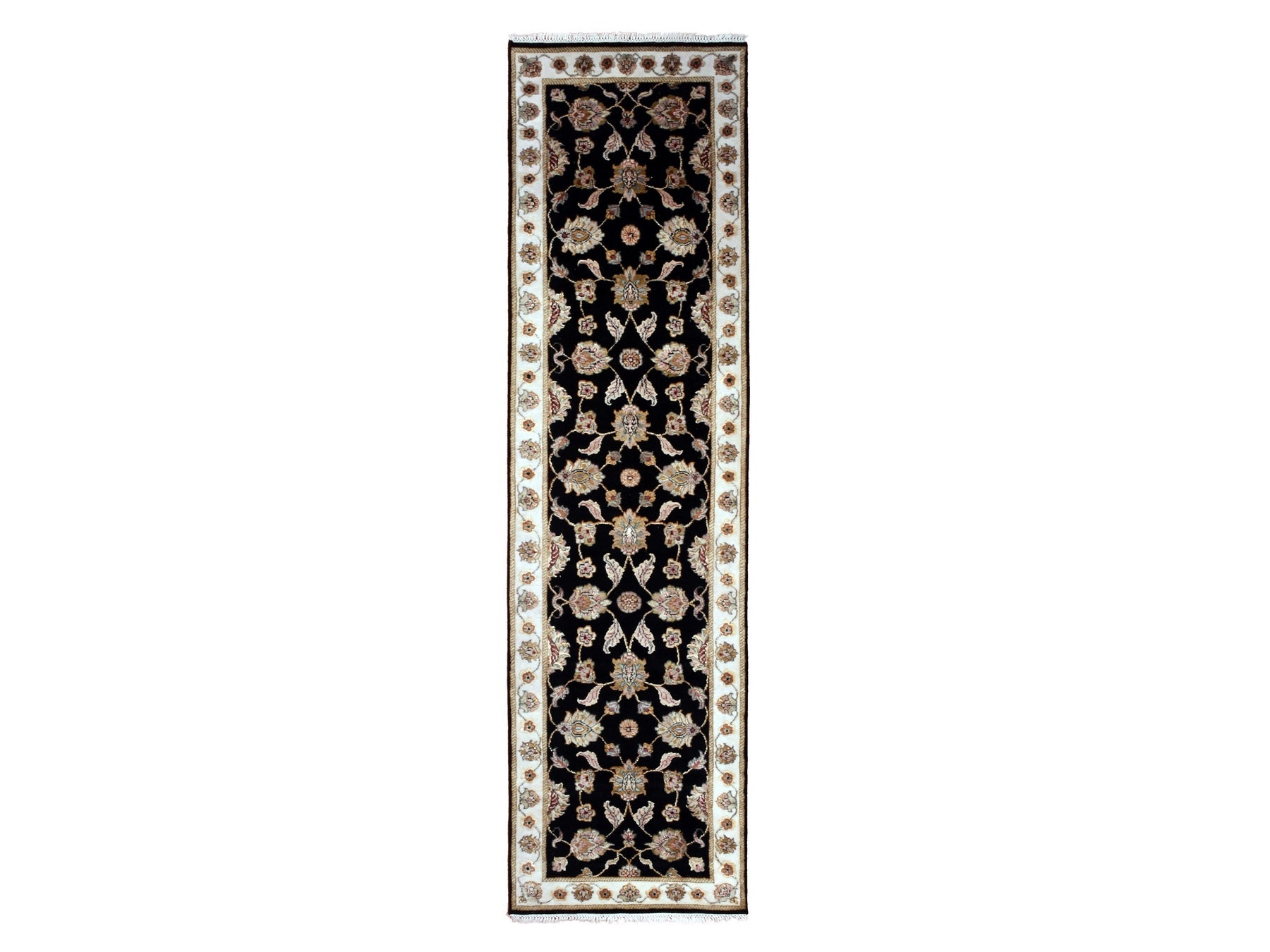 2'7" x 9'10" New Hand Knotted Black Wool & Silk Runner Oriental Rug - MOA10275388