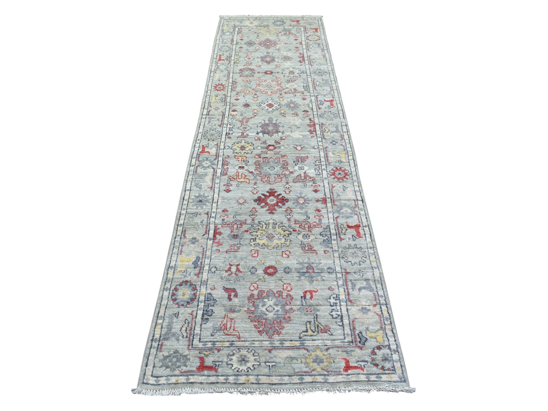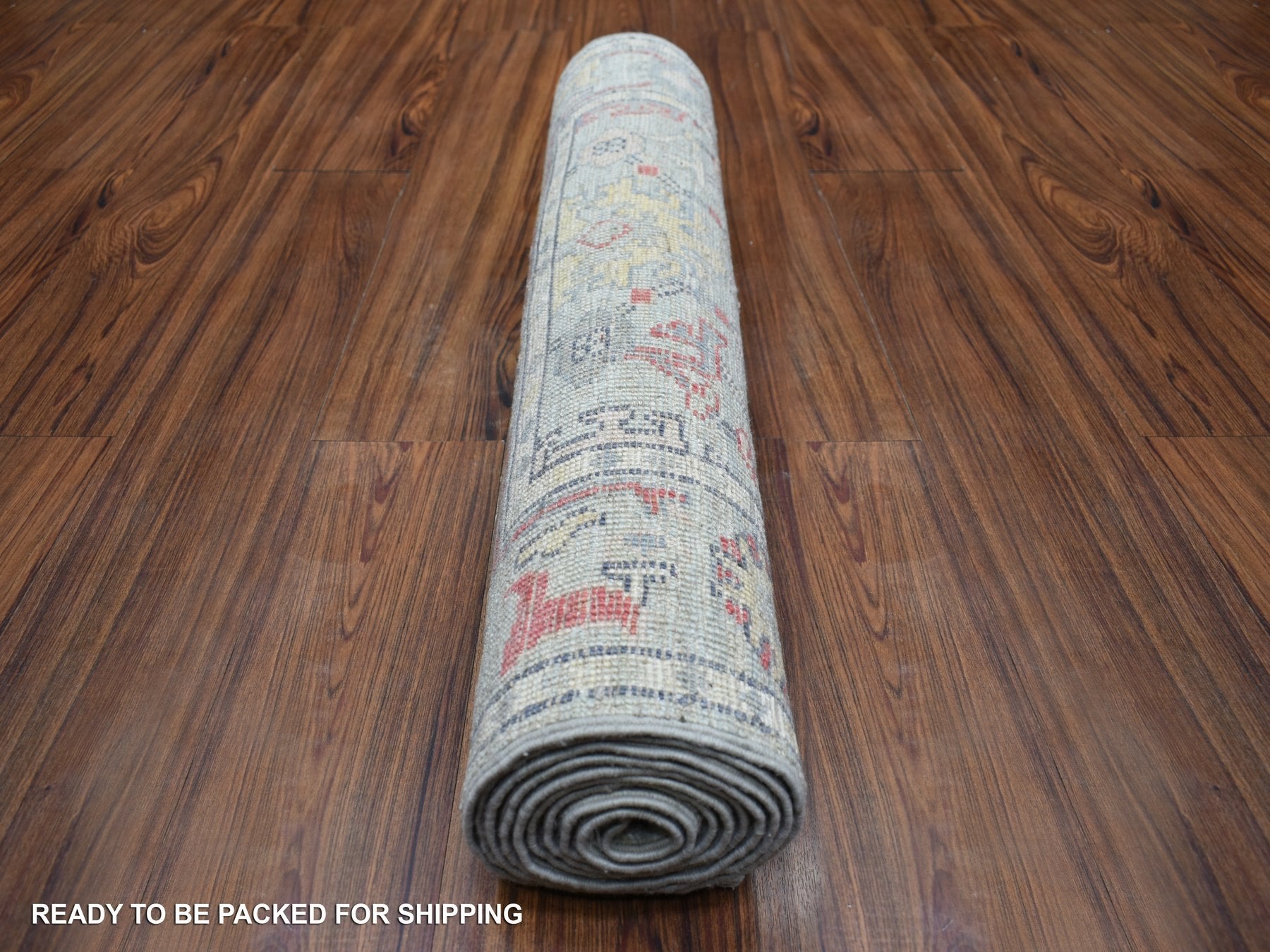 2'7" x 9'5" New Hand Knotted Grey Wool Runner Oriental Rug - MOA10271885