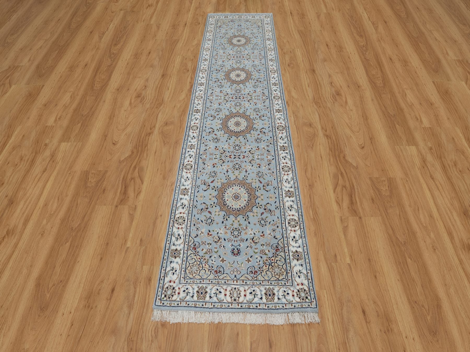 2'8" x 10'1" New Hand Knotted Blue Wool & Silk Runner Oriental Rug - MOA10291029
