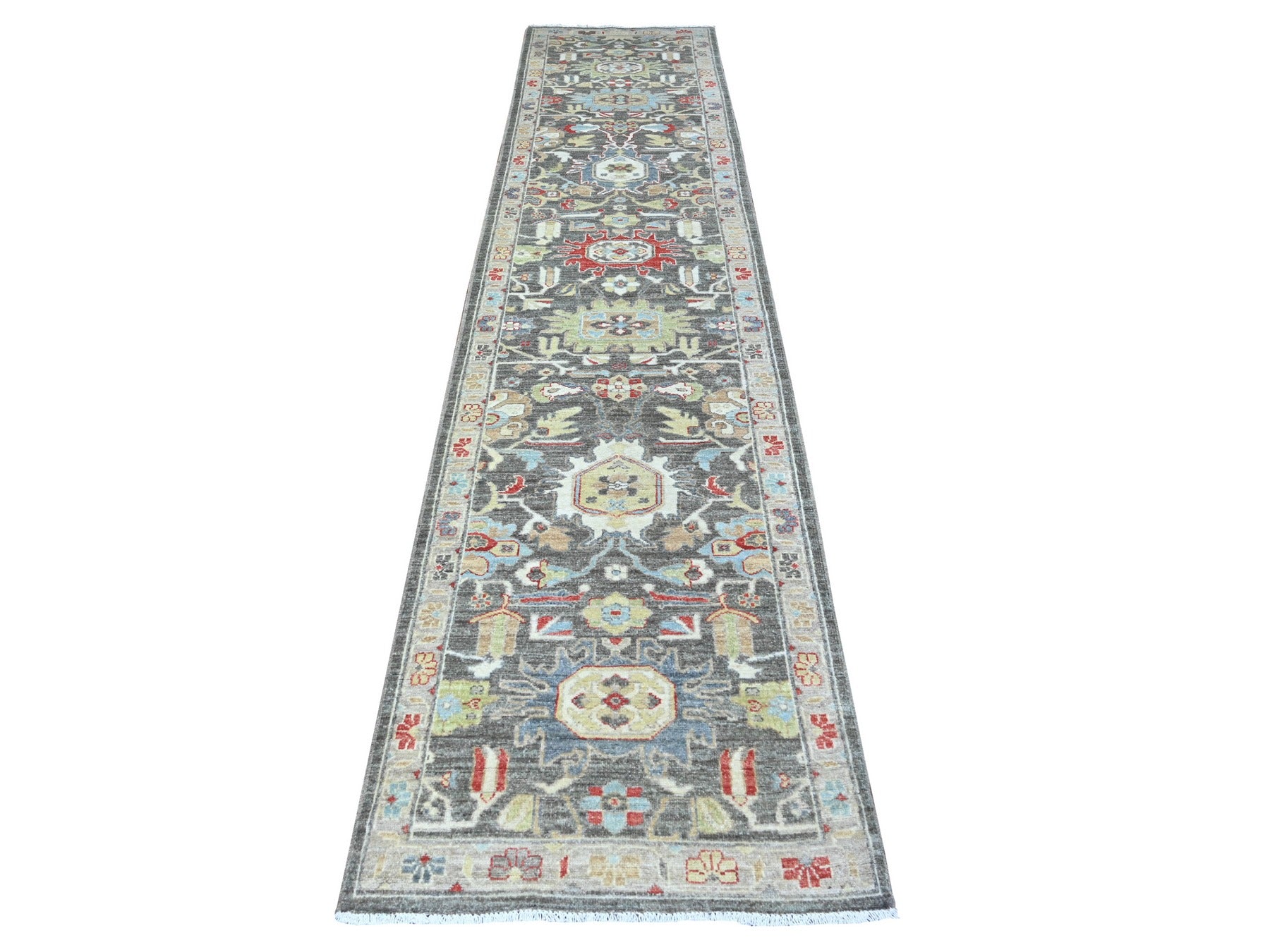 2'8" x 11'10" New Hand Knotted Grey Wool Runner Oriental Rug - MOA10288468