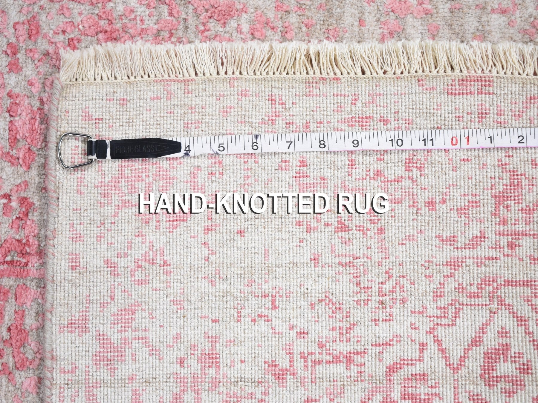 2'8" x 11'10" New Hand Knotted Pink Wool & Silk Runner Oriental Rug - MOA10259204