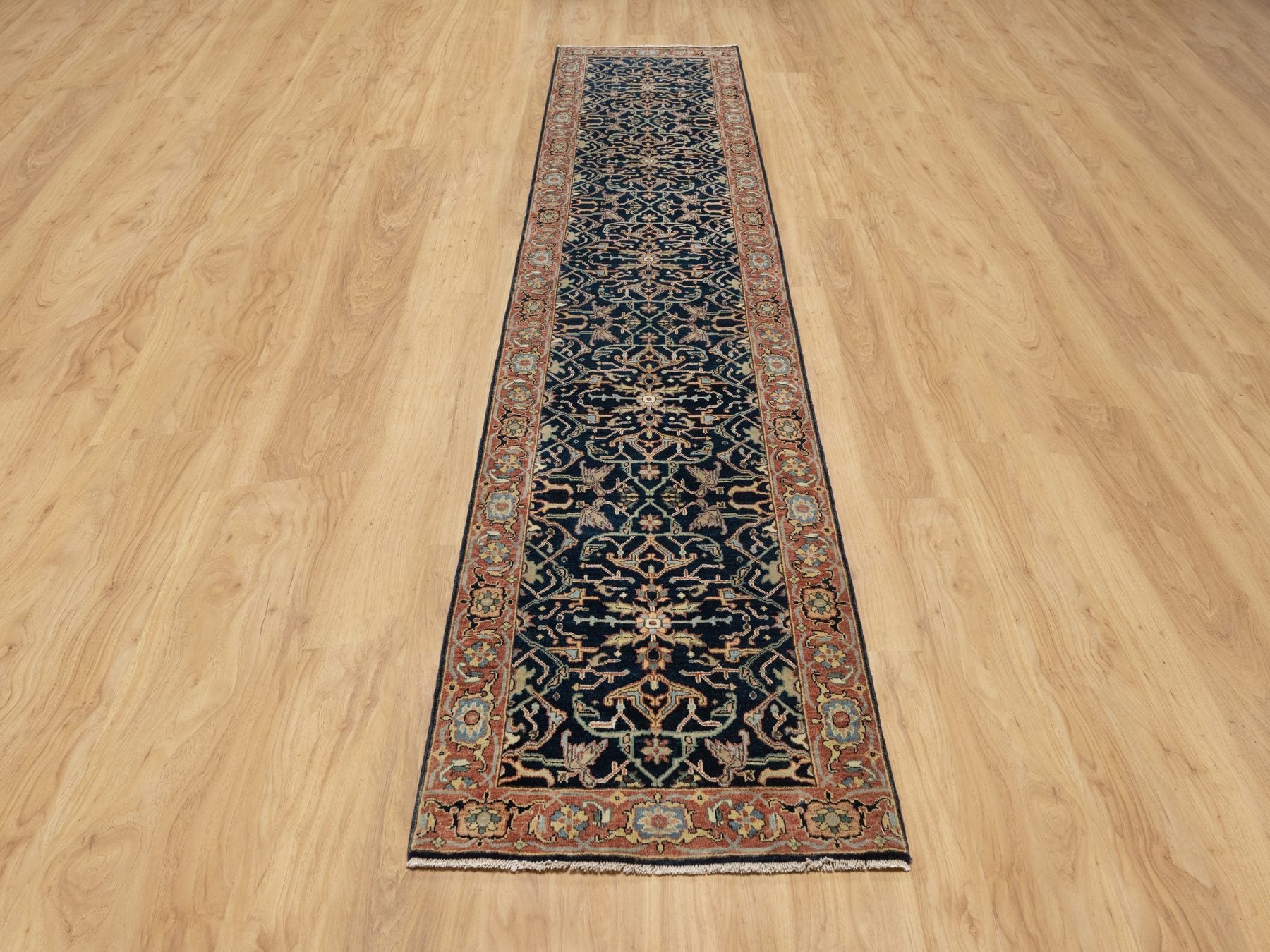 2'8" x 12'1" New Hand Knotted Blue Wool Runner Oriental Rug - MOA10290932