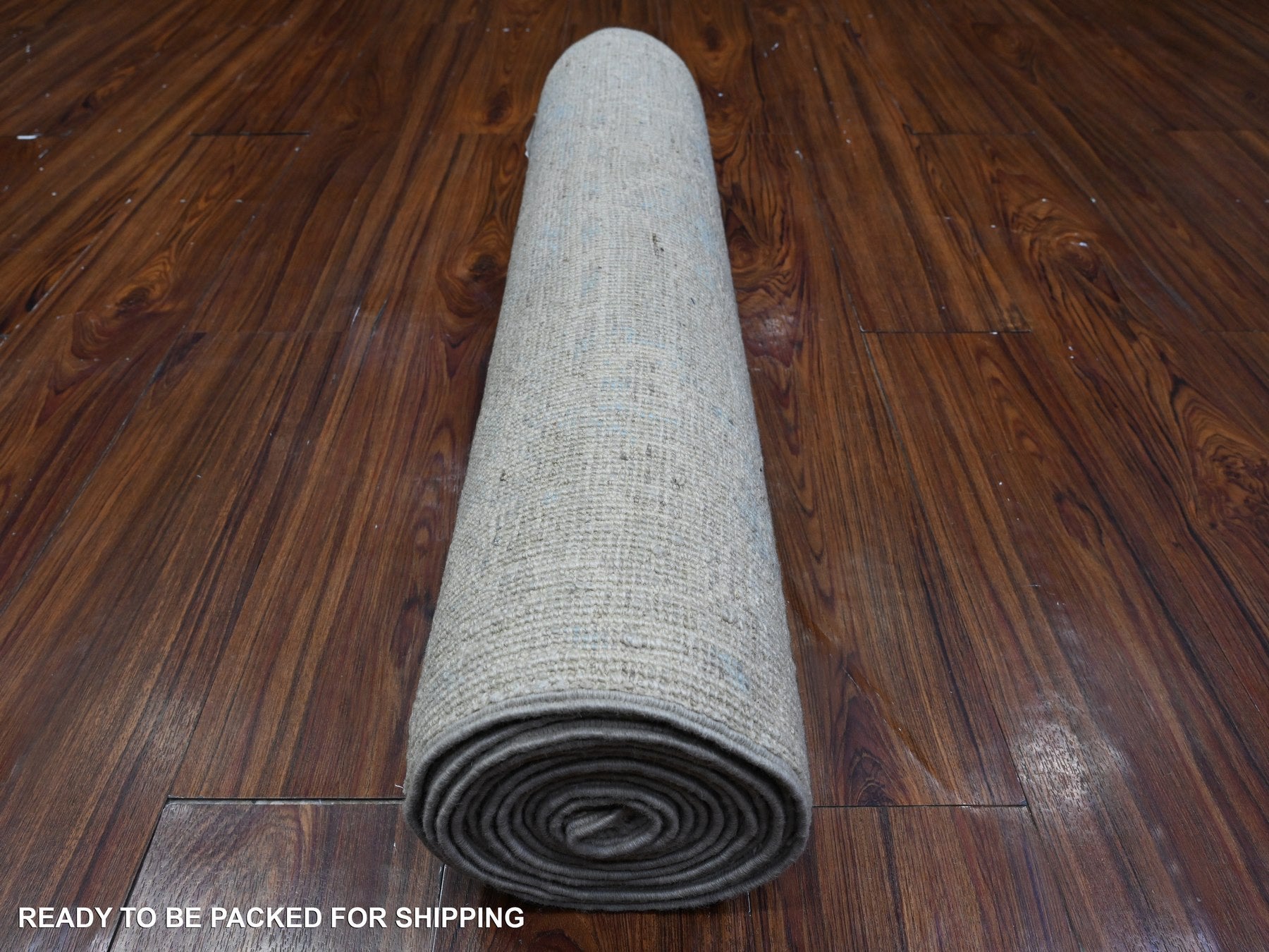 2'8" x 12'2" New Hand Knotted Grey Wool Runner Oriental Rug - MOA10289463