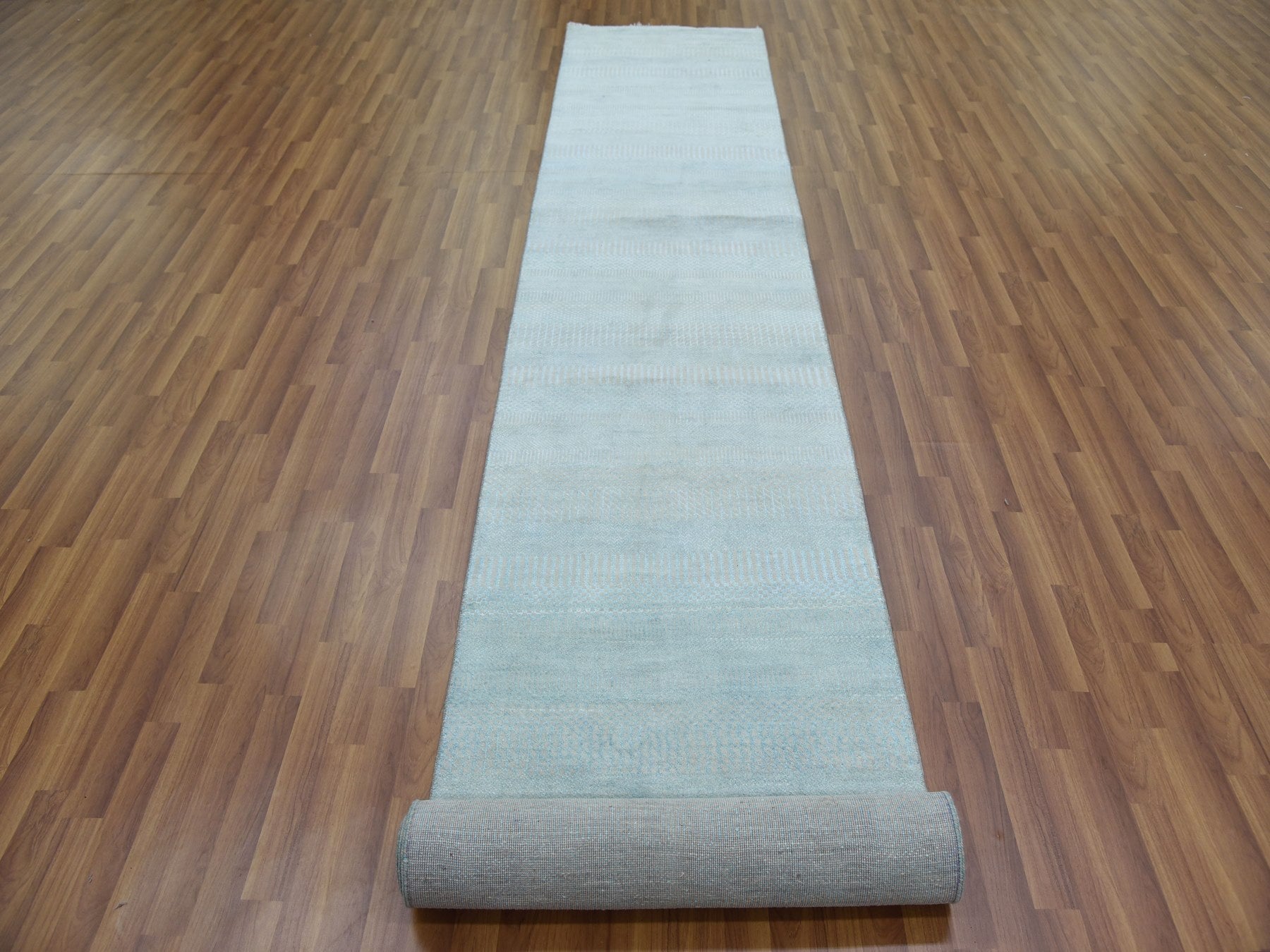2'8" x 15'0" New Hand Knotted Blue Wool & Silk Runner Oriental Rug - MOA10279152