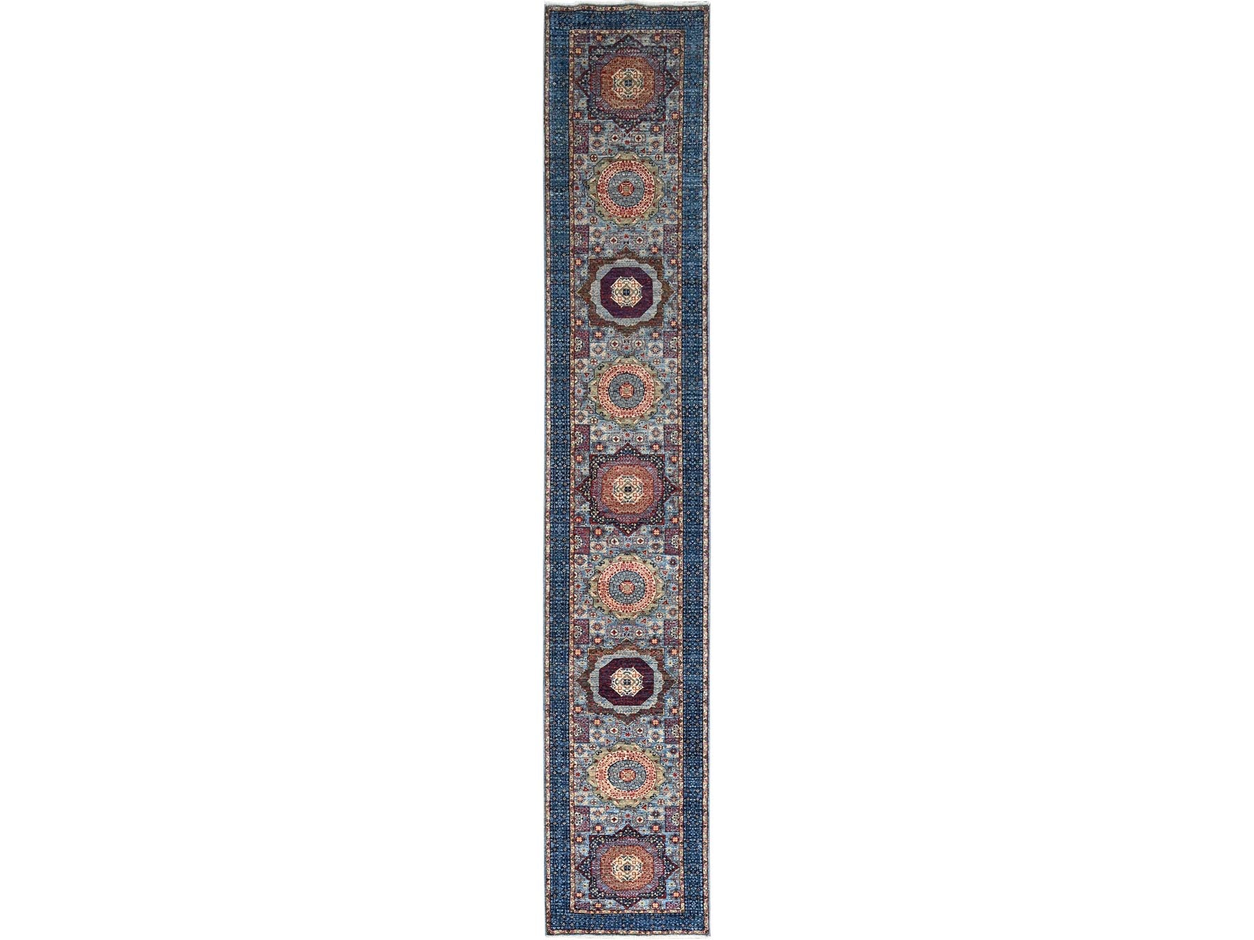 2'8" x 15'4" New Hand Knotted Blue Wool Runner Oriental Rug - MOA10286759