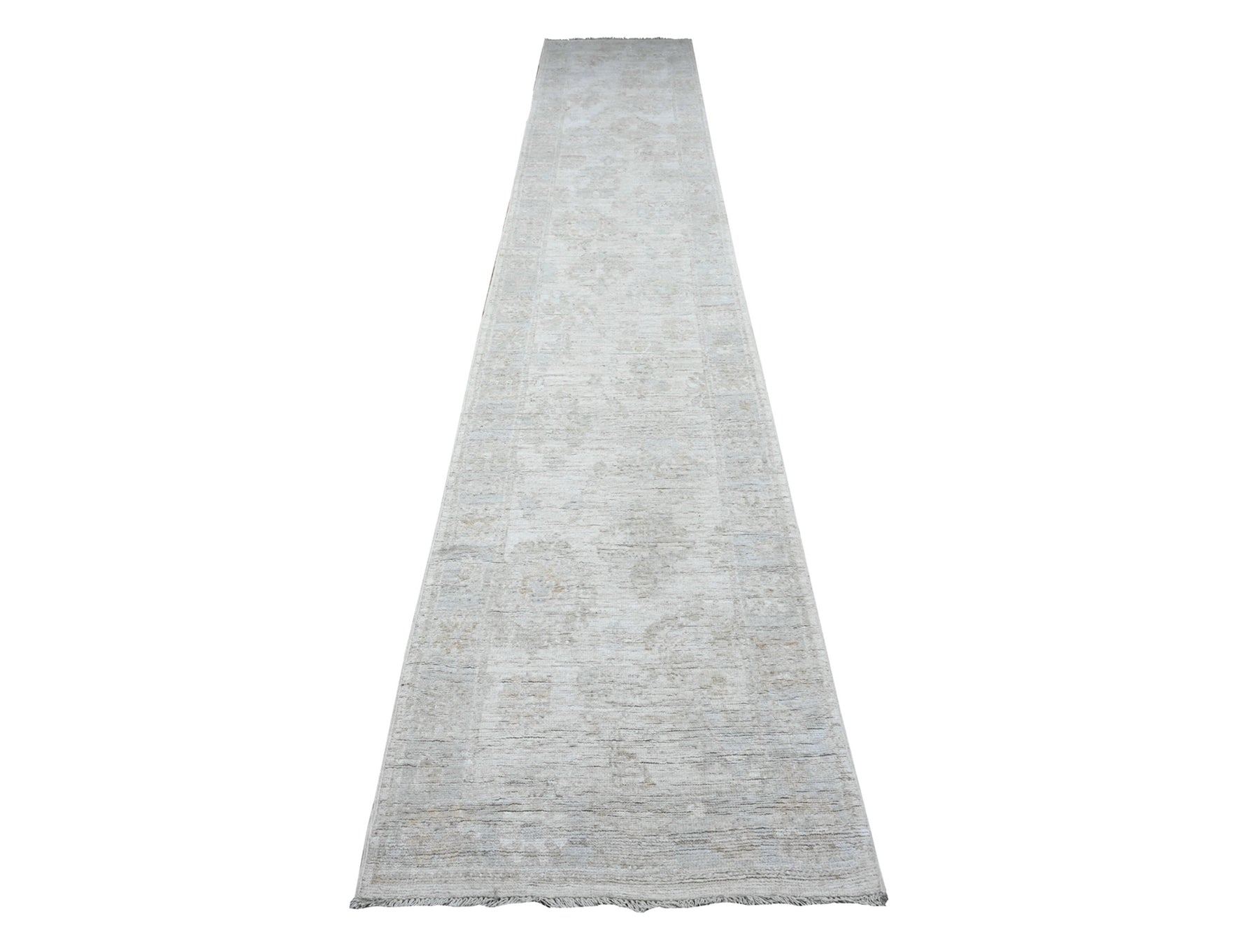 2'8" x 15'5" New Hand Knotted Grey Wool Runner Oriental Rug - MOA10289599