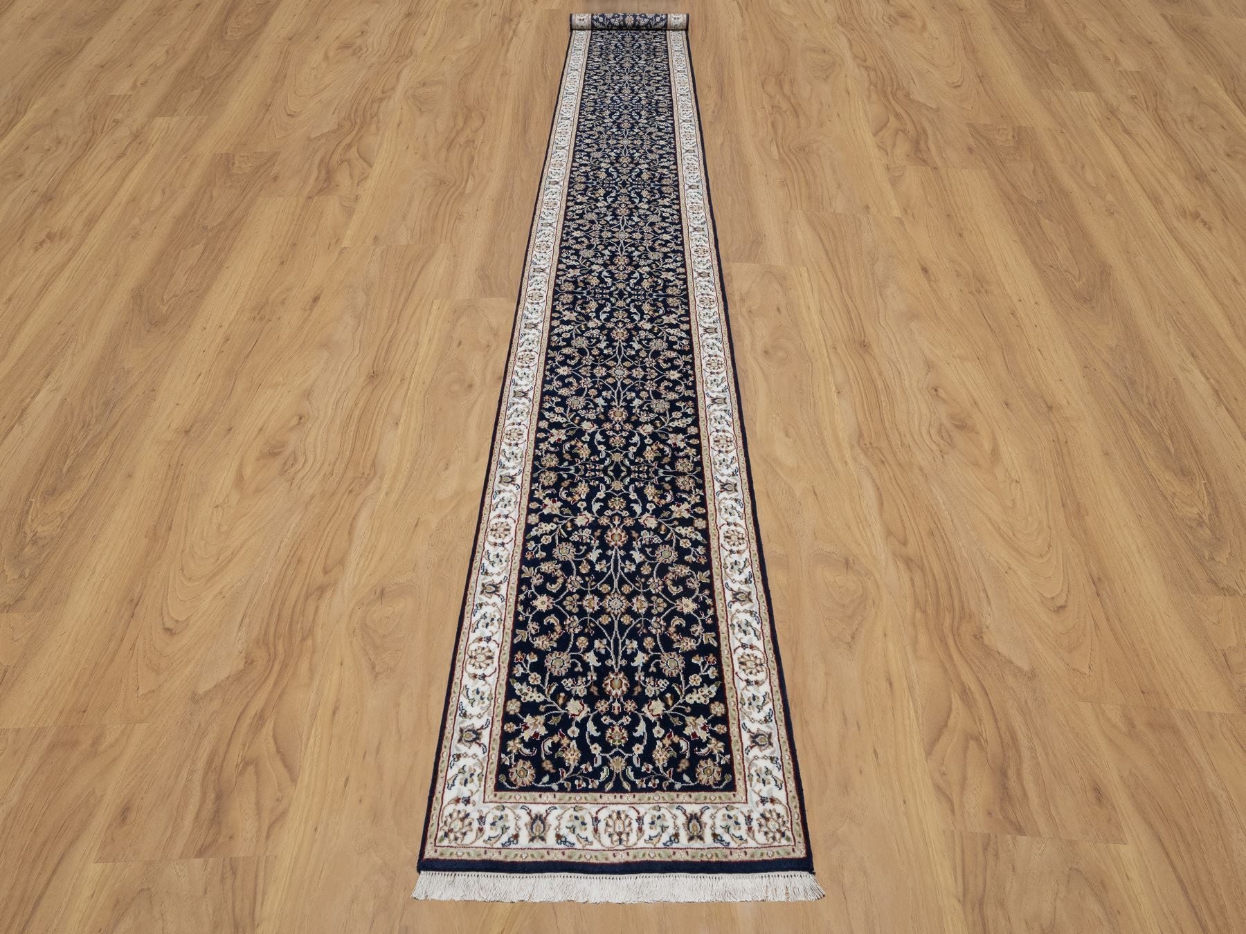 2'8" x 18'0" New Hand Knotted Blue Wool & Silk Runner Oriental Rug - MOA10290976