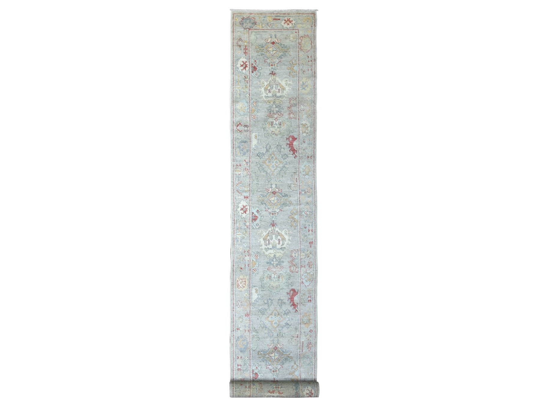 2'8" x 19'6" New Hand Knotted Grey Wool Runner Oriental Rug - MOA10270050