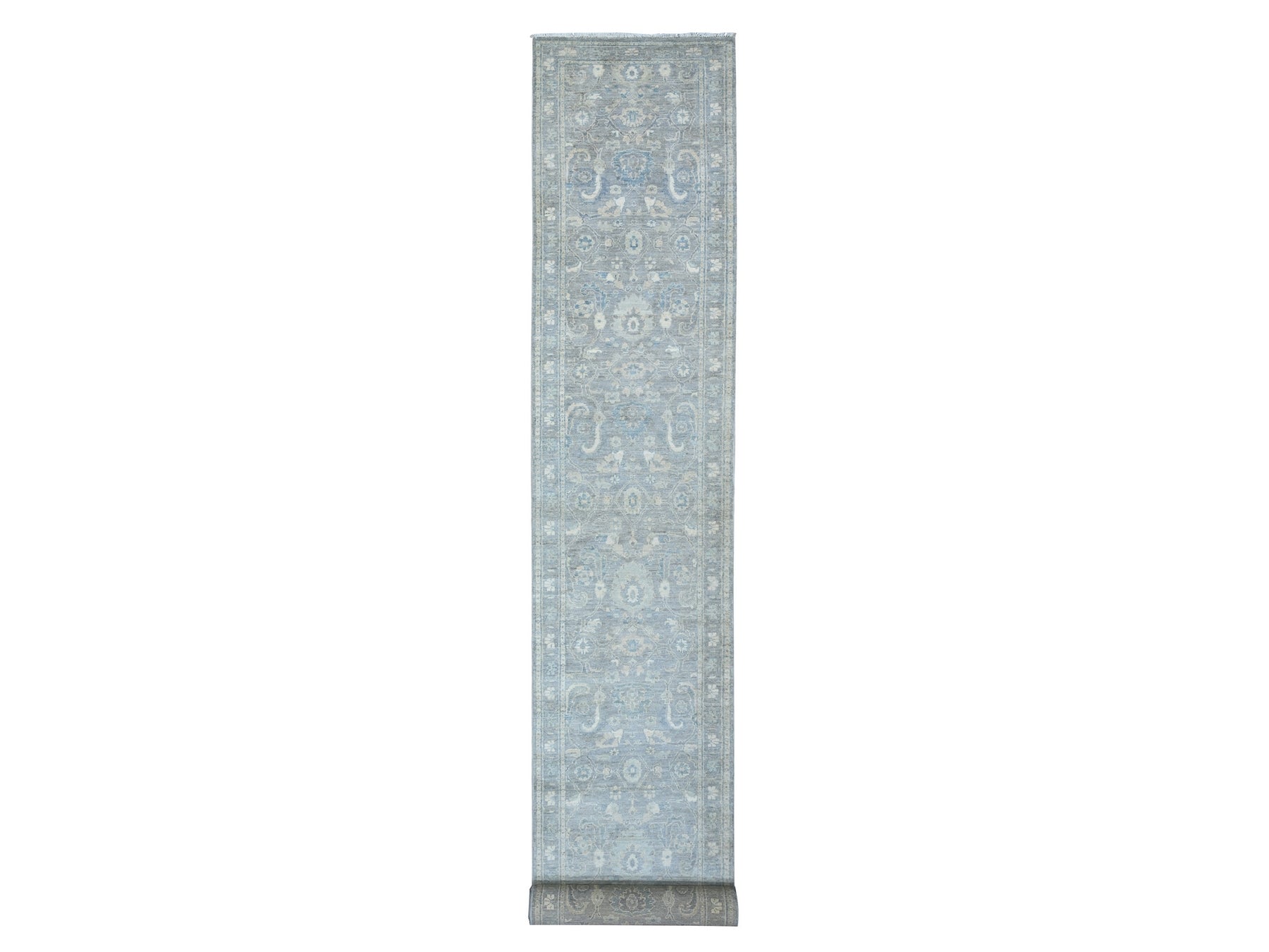 2'8" x 19'9" New Hand Knotted Grey Wool Runner Oriental Rug - MOA10288466