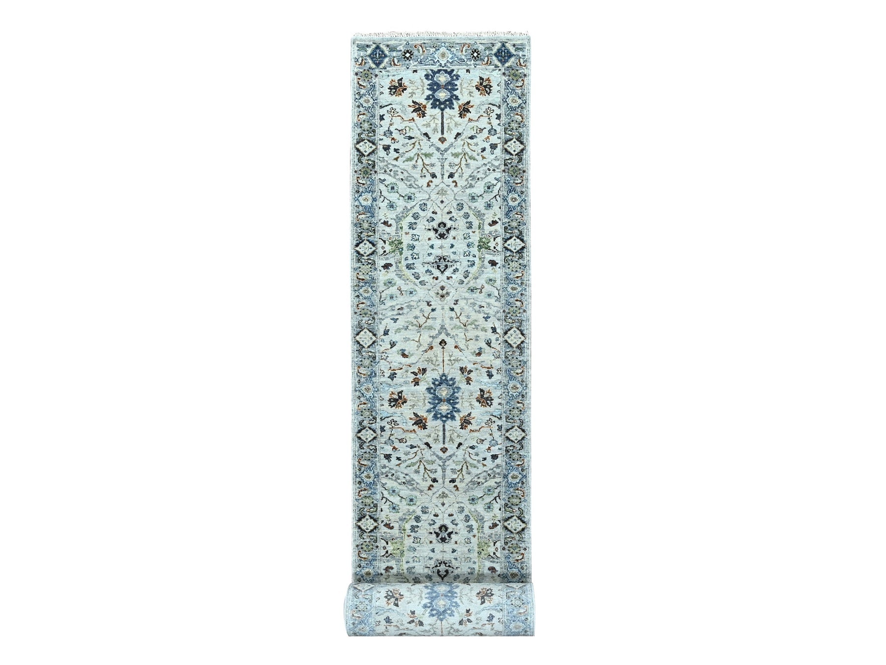 2'8" x 23'10" New Hand Knotted Grey Wool Runner Oriental Rug - MOA10284986