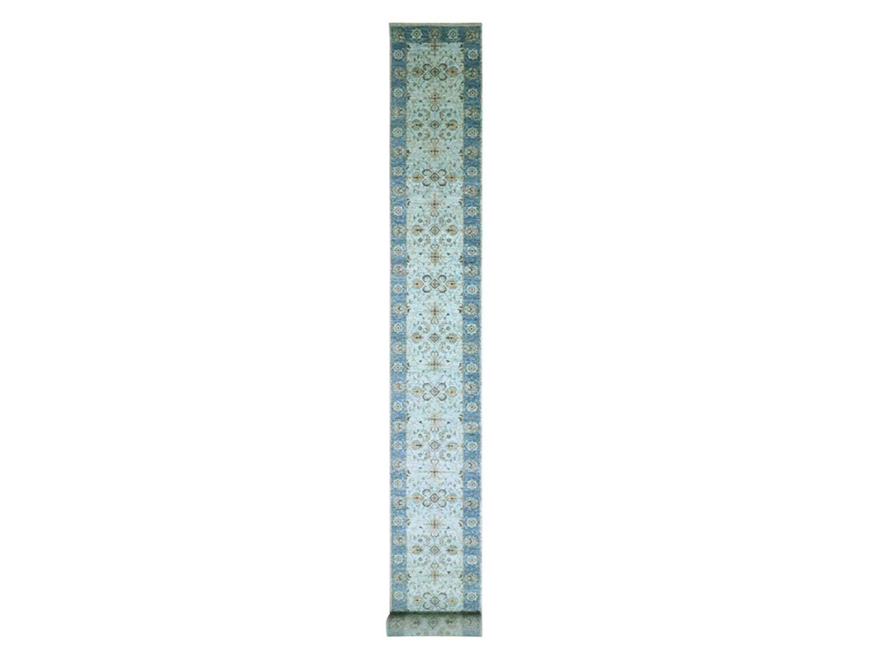 2'8" x 24'1" New Hand Knotted Blue Wool Runner Oriental Rug - MOA10276126