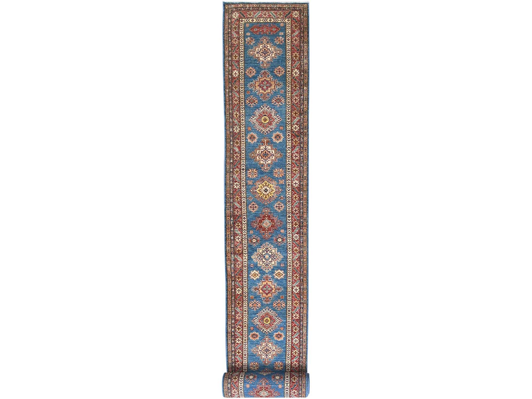 2'8" x 40'8" New Hand Knotted Blue Wool Runner Oriental Rug - MOA10282599