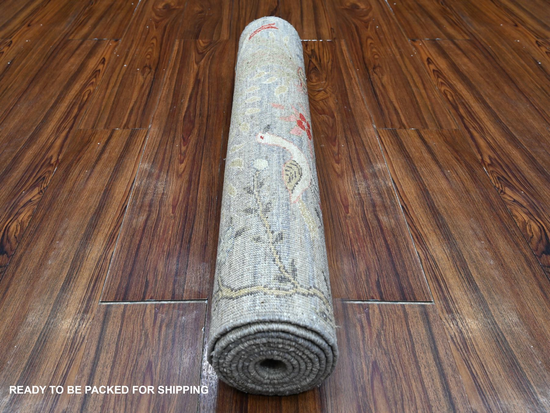 2'8" x 7'9" New Hand Knotted Grey Wool Runner Oriental Rug - MOA10289052
