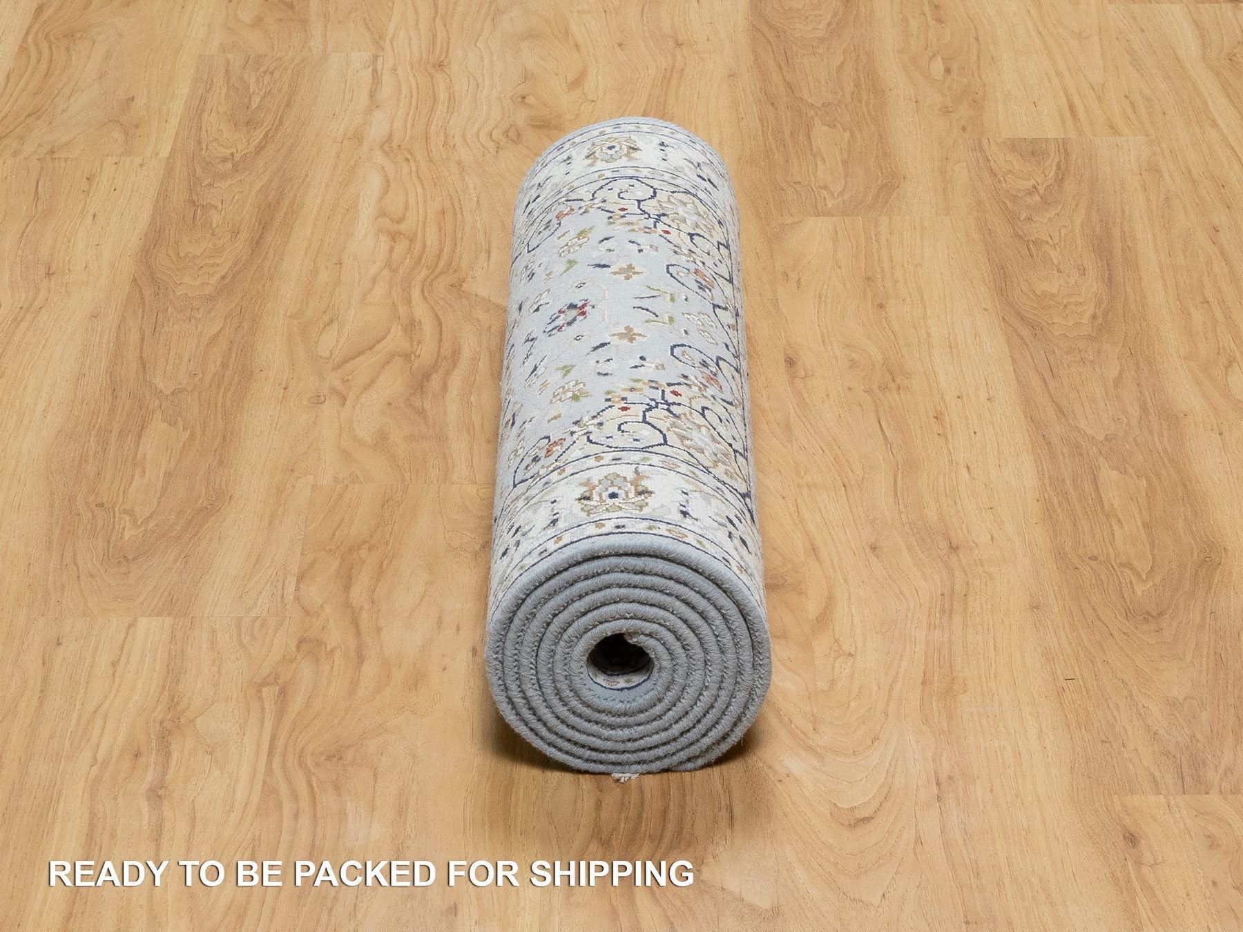 2'8" x 8'3" New Hand Knotted Blue Wool & Silk Runner Oriental Rug - MOA10290879