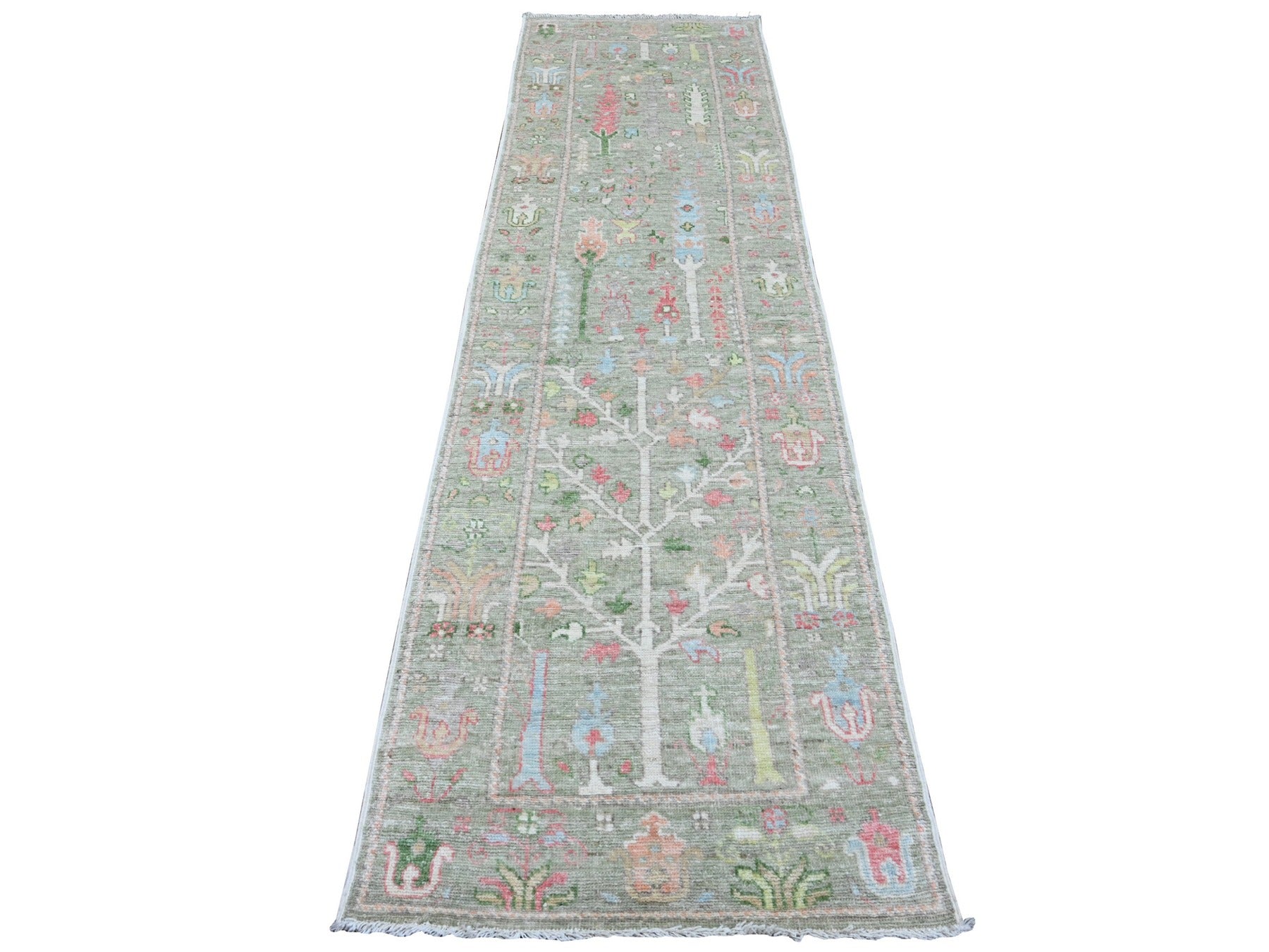 2'8" x 9'11" New Hand Knotted Green Wool Runner Oriental Rug - MOA10289968
