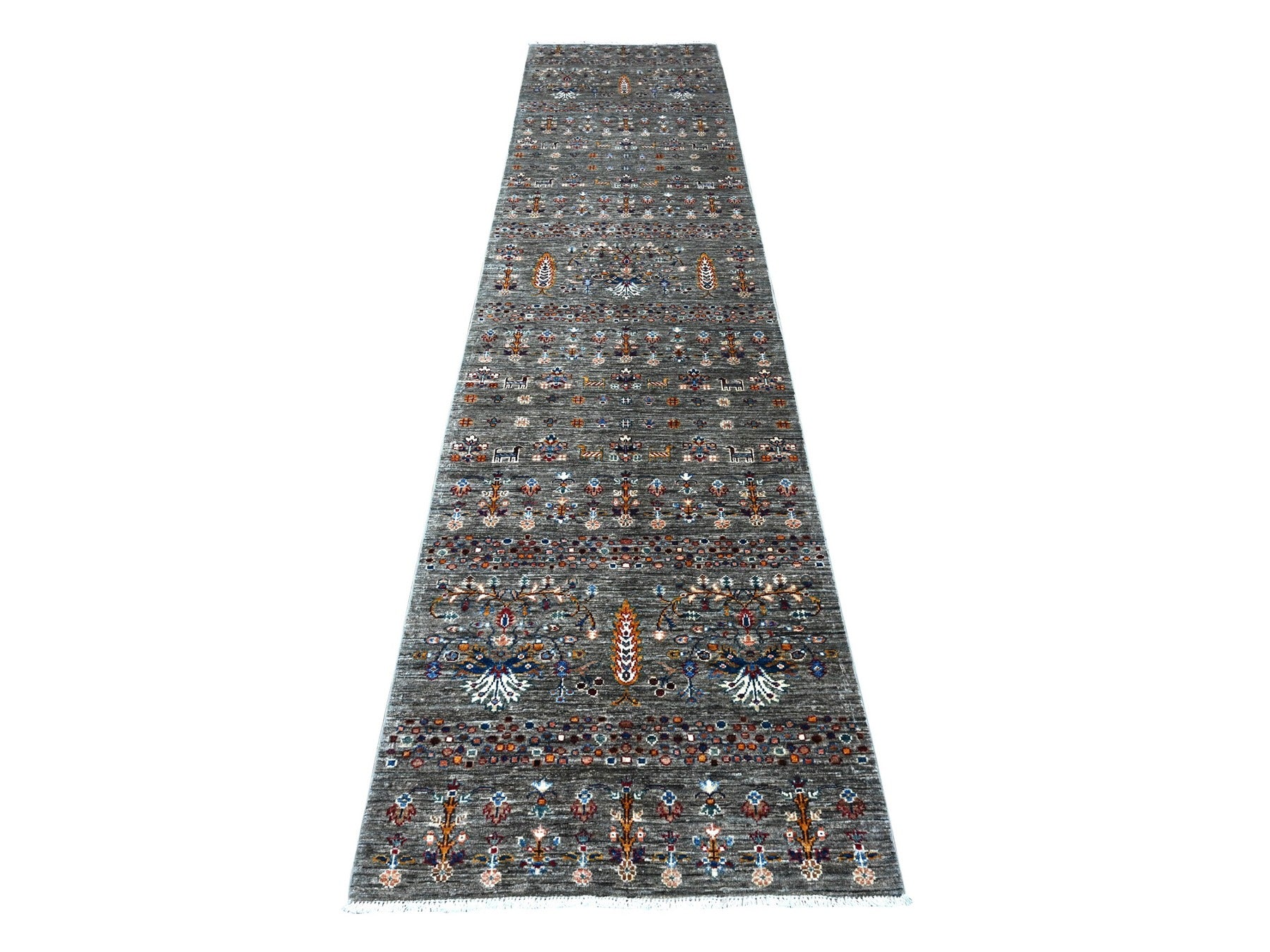 2'9" x 12'0" New Hand Knotted Grey Wool Runner Oriental Rug - MOA10289302