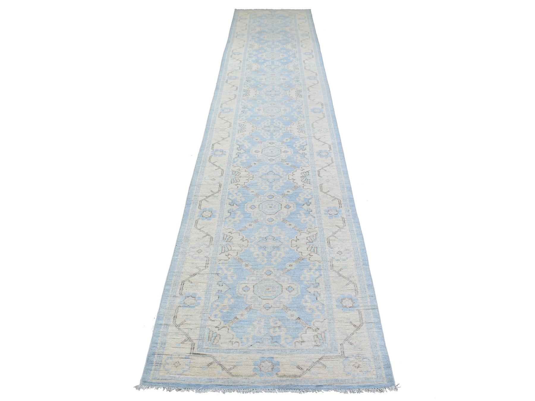 2'9" x 15'0" New Hand Knotted Blue Wool Runner Oriental Rug - MOA10270267