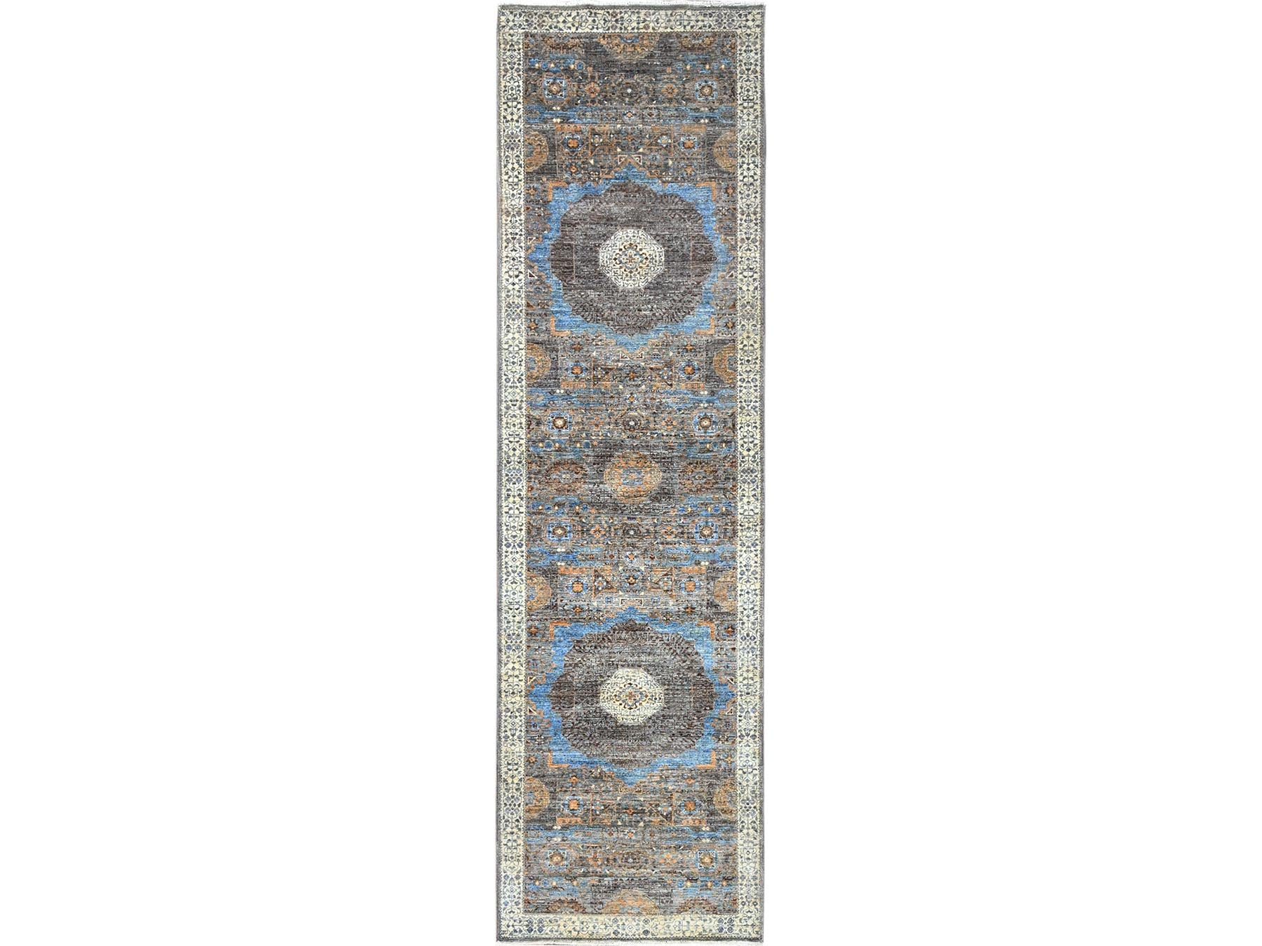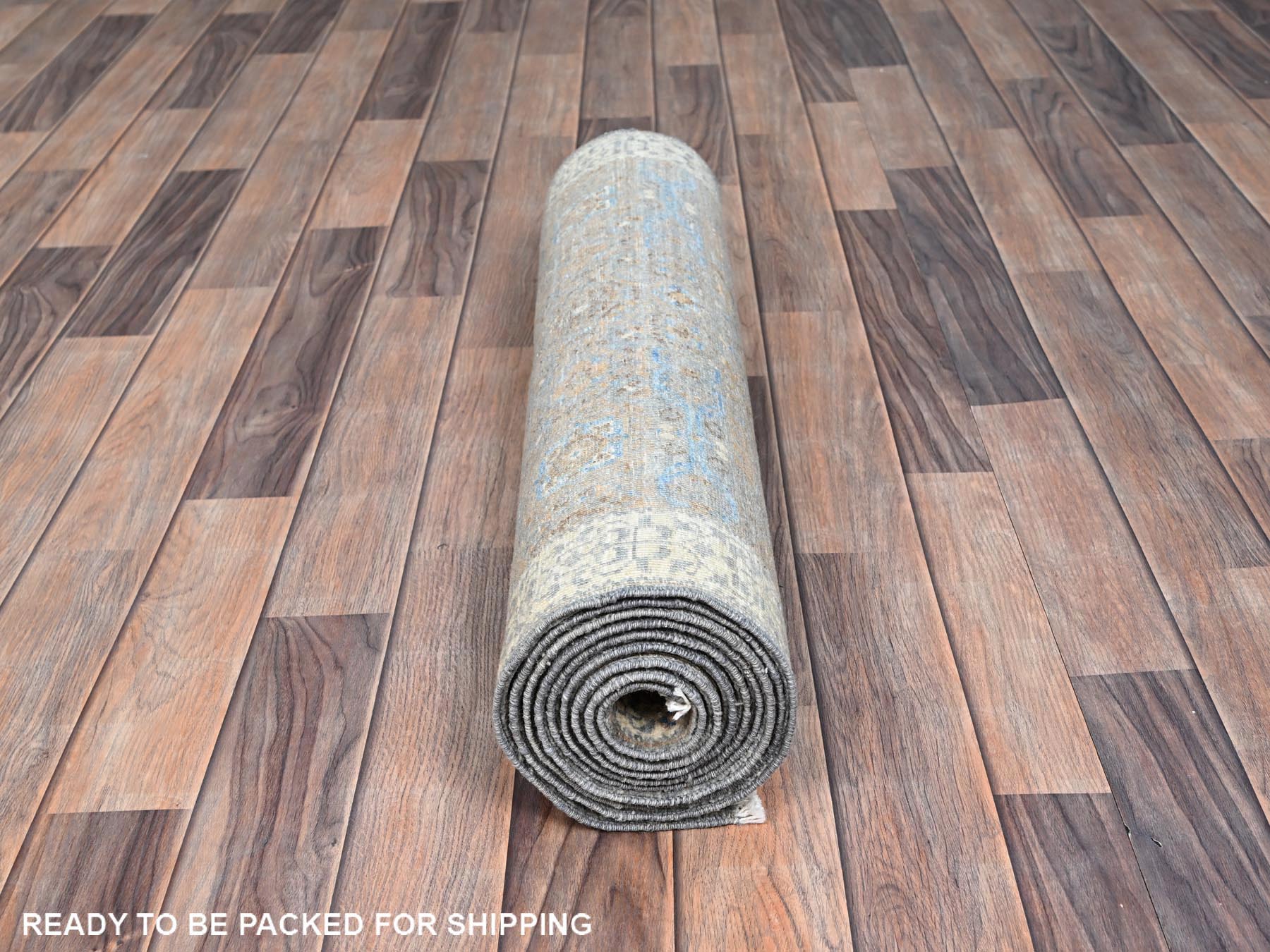 2'9" x 9'10" New Hand Knotted Grey Wool Runner Oriental Rug - MOA10286758