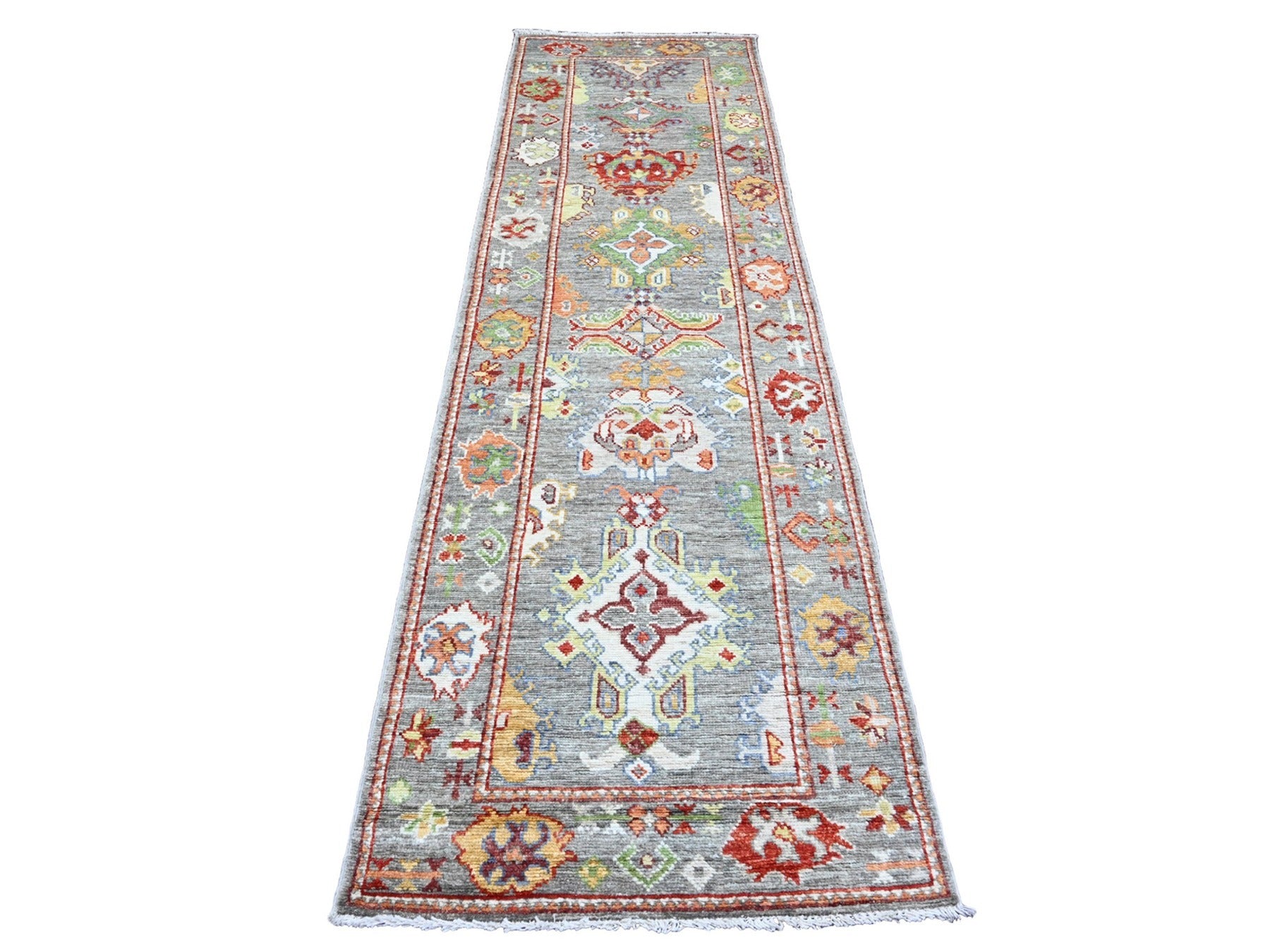 2'9" x 9'6" New Hand Knotted Grey Wool Runner Oriental Rug - MOA10220128