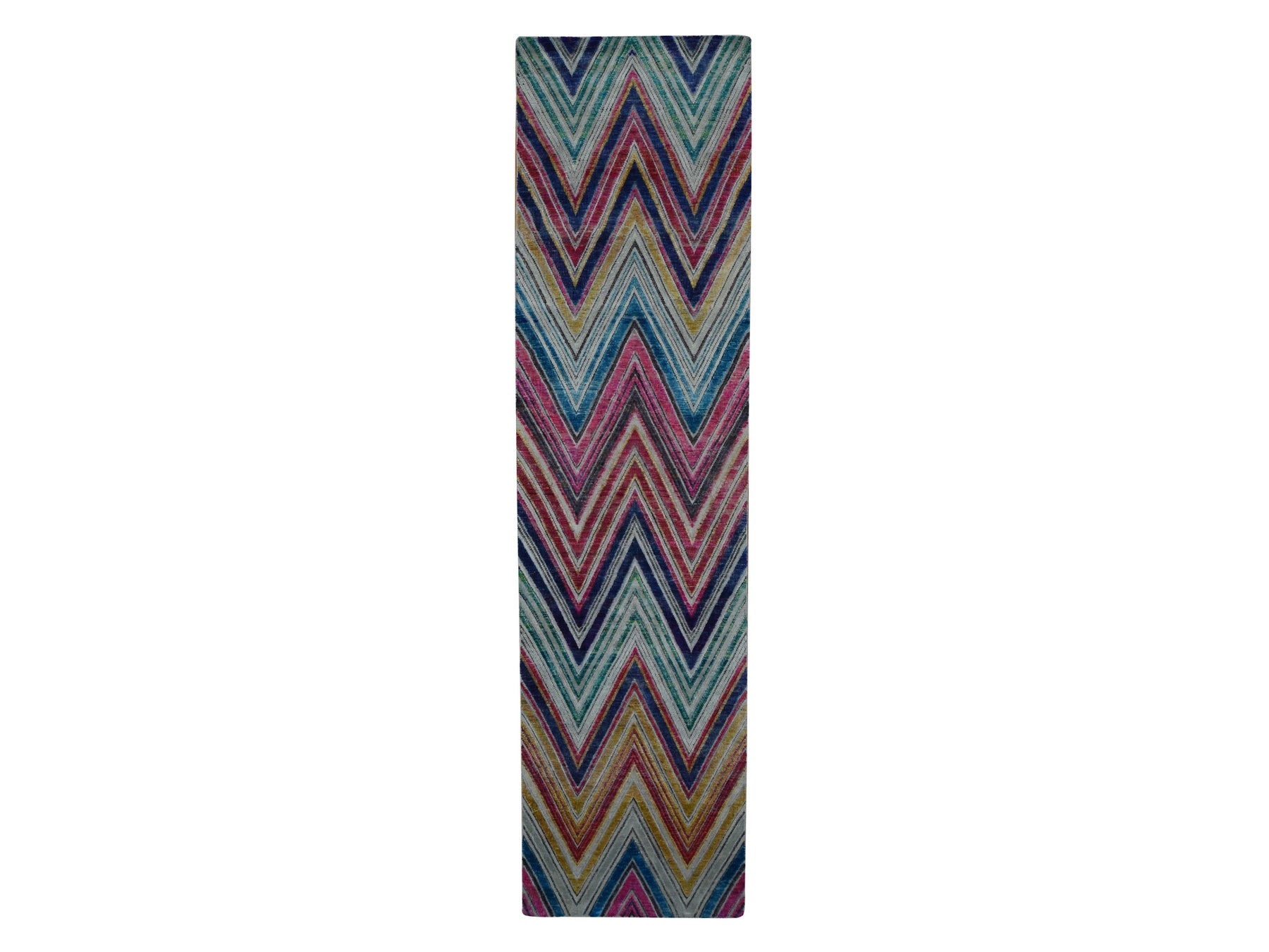 3'0" x 11'10" New Hand Knotted Red Wool & Silk Runner Oriental Rug - MOA10287630