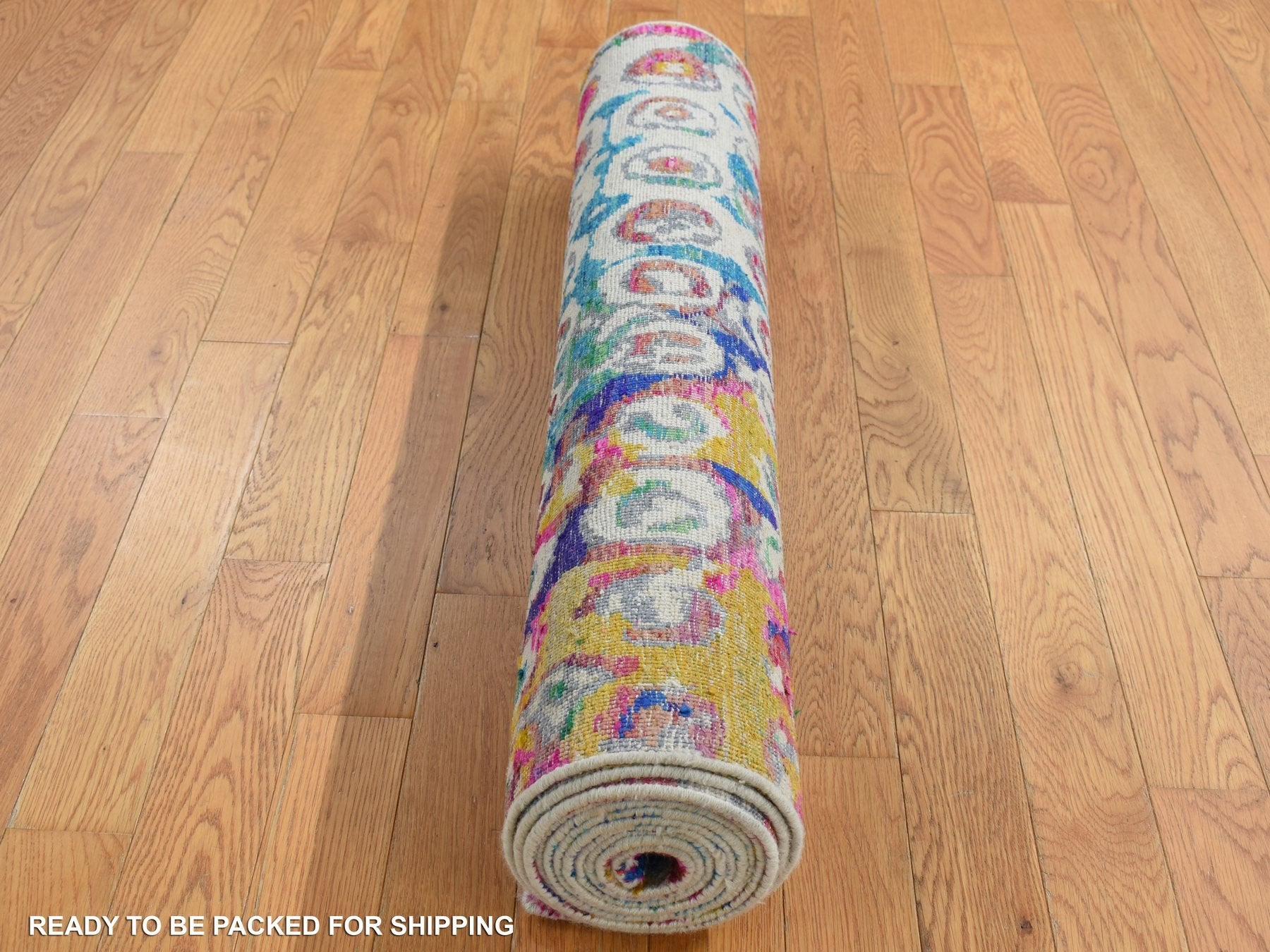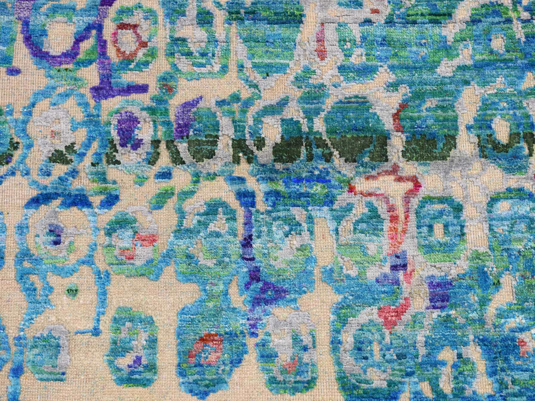 3'0" x 12'4" New Hand Knotted Blue Sari Silk Runner Oriental Rug - MOA10287681