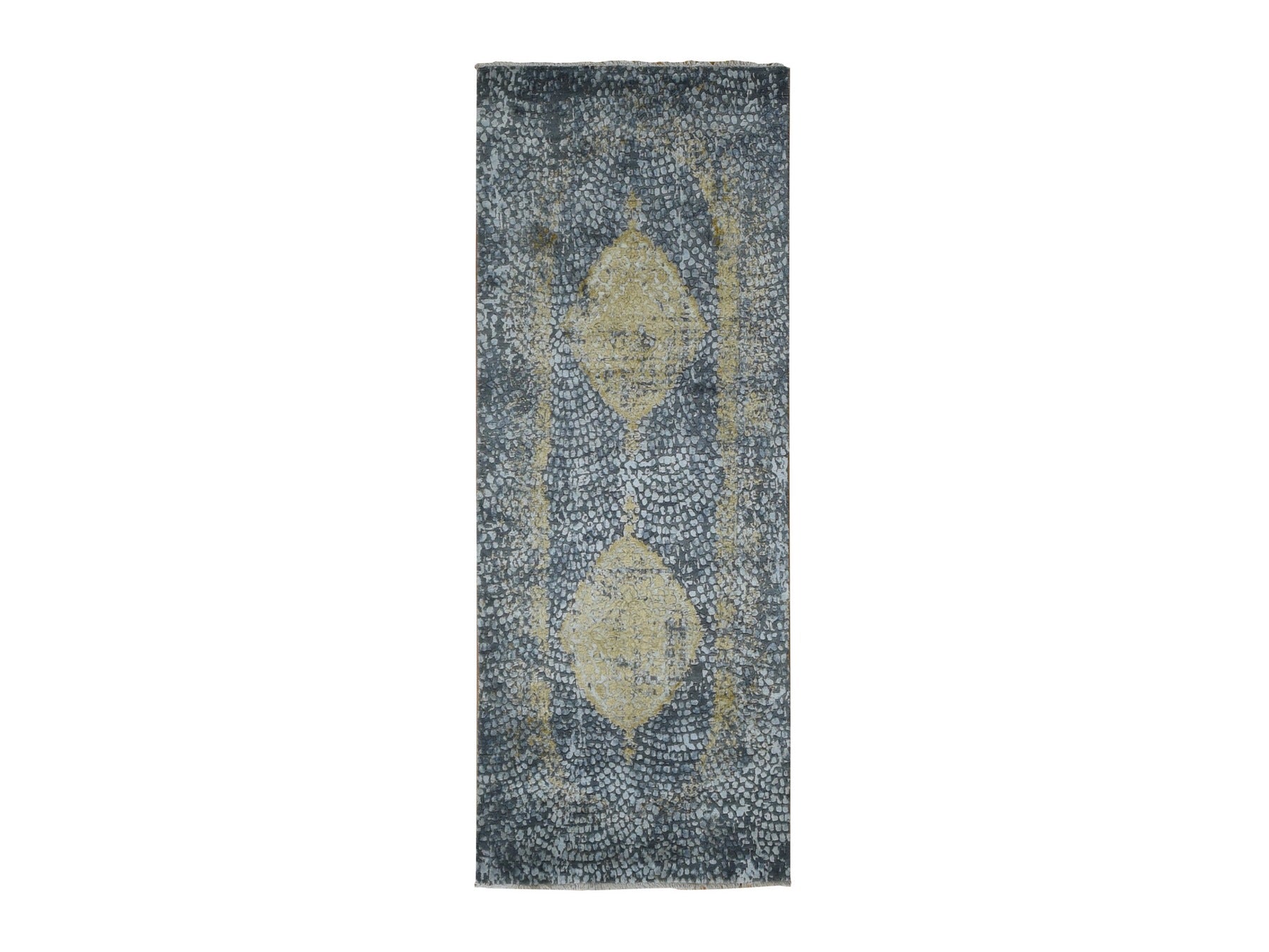 3'0" x 8'0" New Hand Knotted Grey Wool & Pure Silk Runner Oriental Rug - MOA10287627