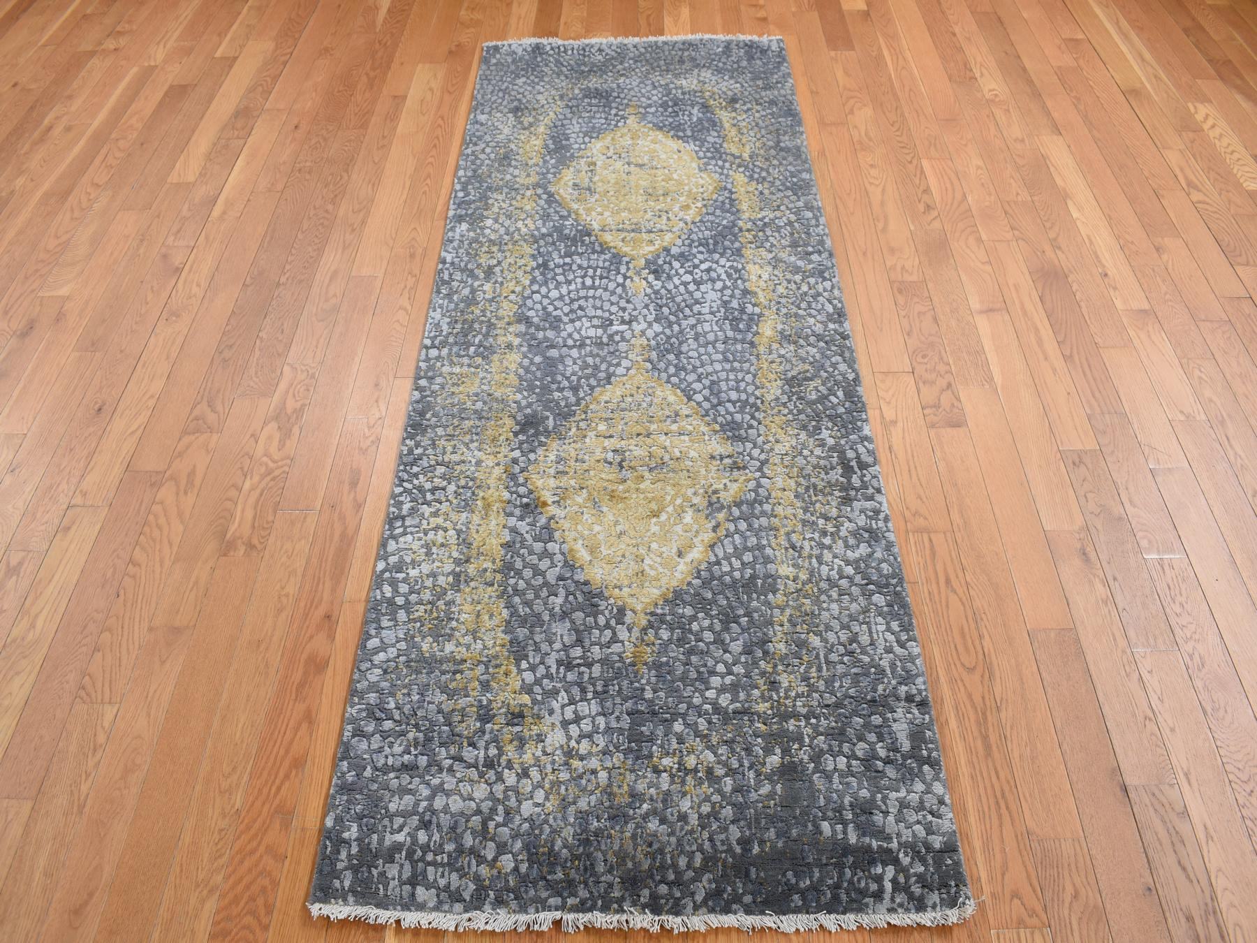 3'0" x 8'0" New Hand Knotted Grey Wool & Silk Runner Oriental Rug - MOA10287688