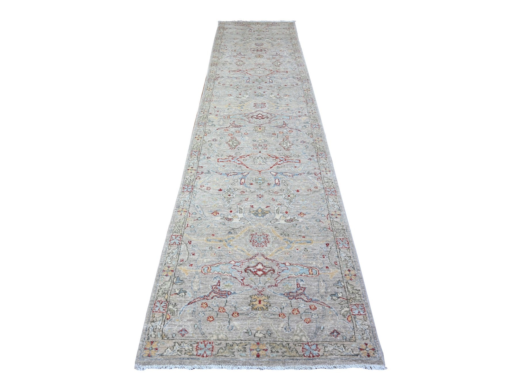 3'1" x 13'9" New Hand Knotted Grey Wool Runner Oriental Rug - MOA10288332