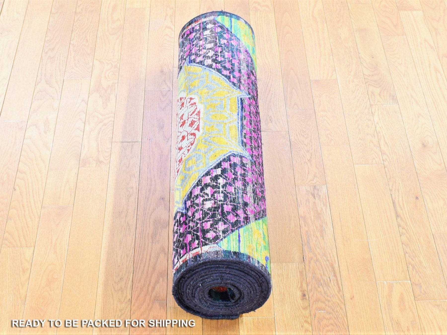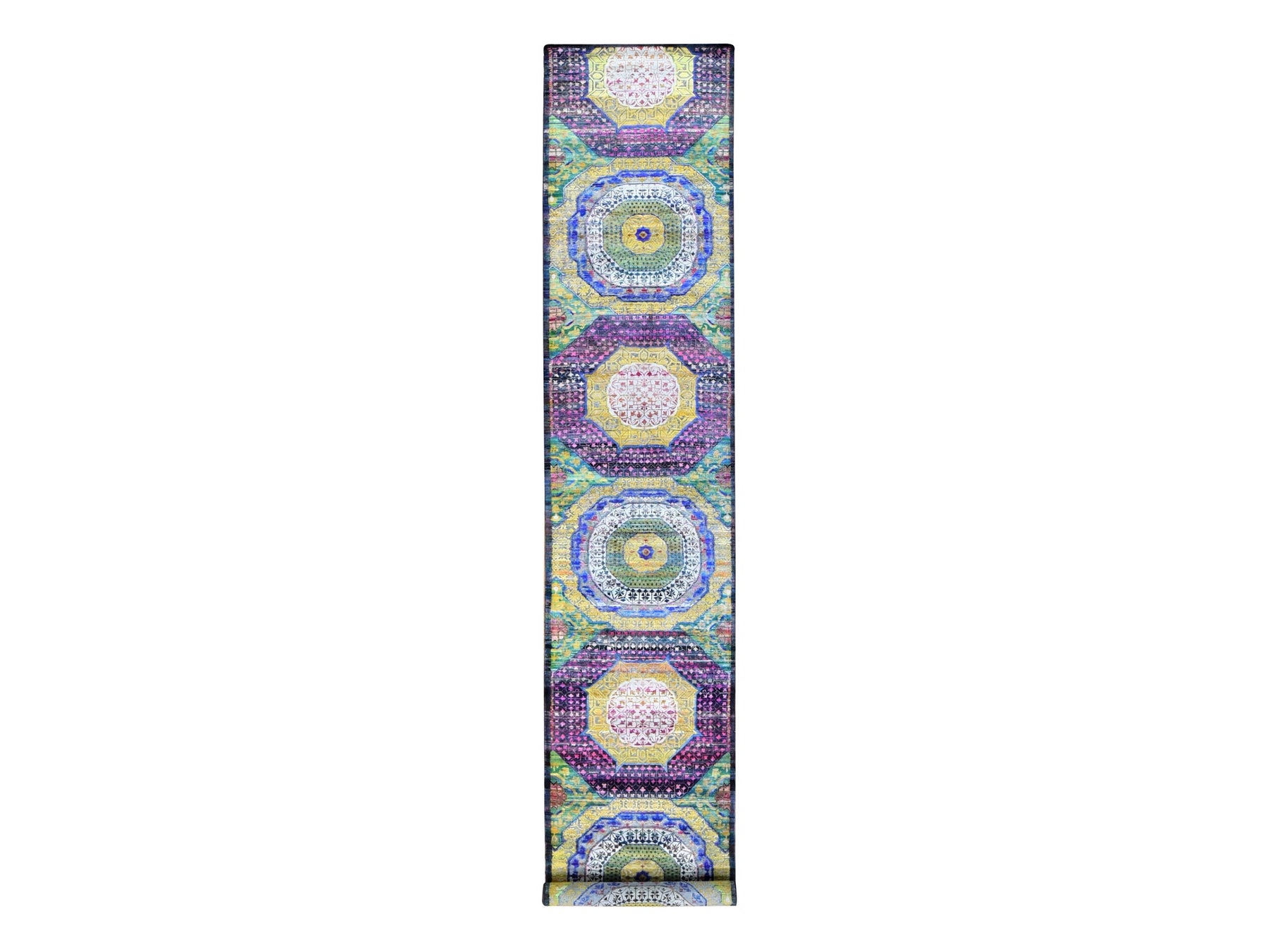 3'1" x 17'4" New Hand Knotted Green Sari Silk Runner Oriental Rug - MOA10280244